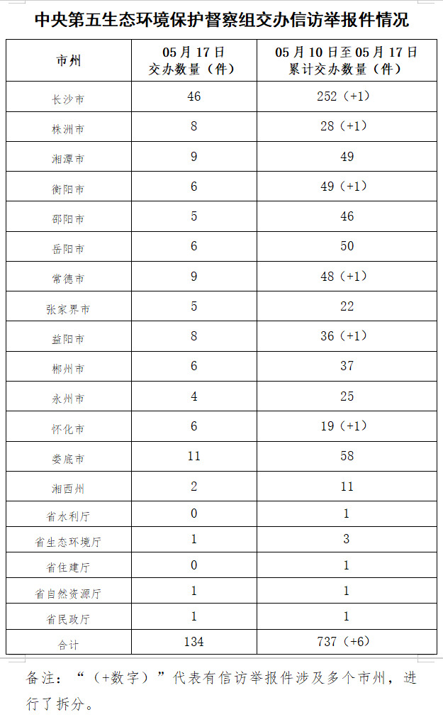 5月17日,中央第五生態(tài)環(huán)境保護(hù)督察組向我省交辦第八批信訪件,共134件,其中重點(diǎn)件6件。