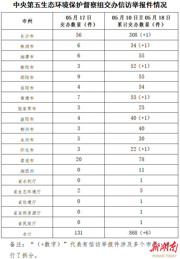 5月18日,中央第五生態(tài)環(huán)境保護督察組向我省交辦131件群眾信訪舉報件,包括重點件7件。截至目前,我省已被交辦九批信訪件,共868件,分解后交辦874件,其中重點件60件。根據督察工作要求,這些交辦信訪件已全部轉交相關地區(qū)和部門跟進處理。