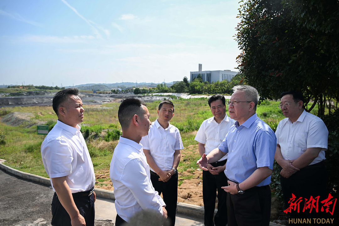 (5月28日,沈曉明在湖南駿泰新材料科技有限公司了解廢氣回收設(shè)施升級、工業(yè)棄渣場管理等情況。)