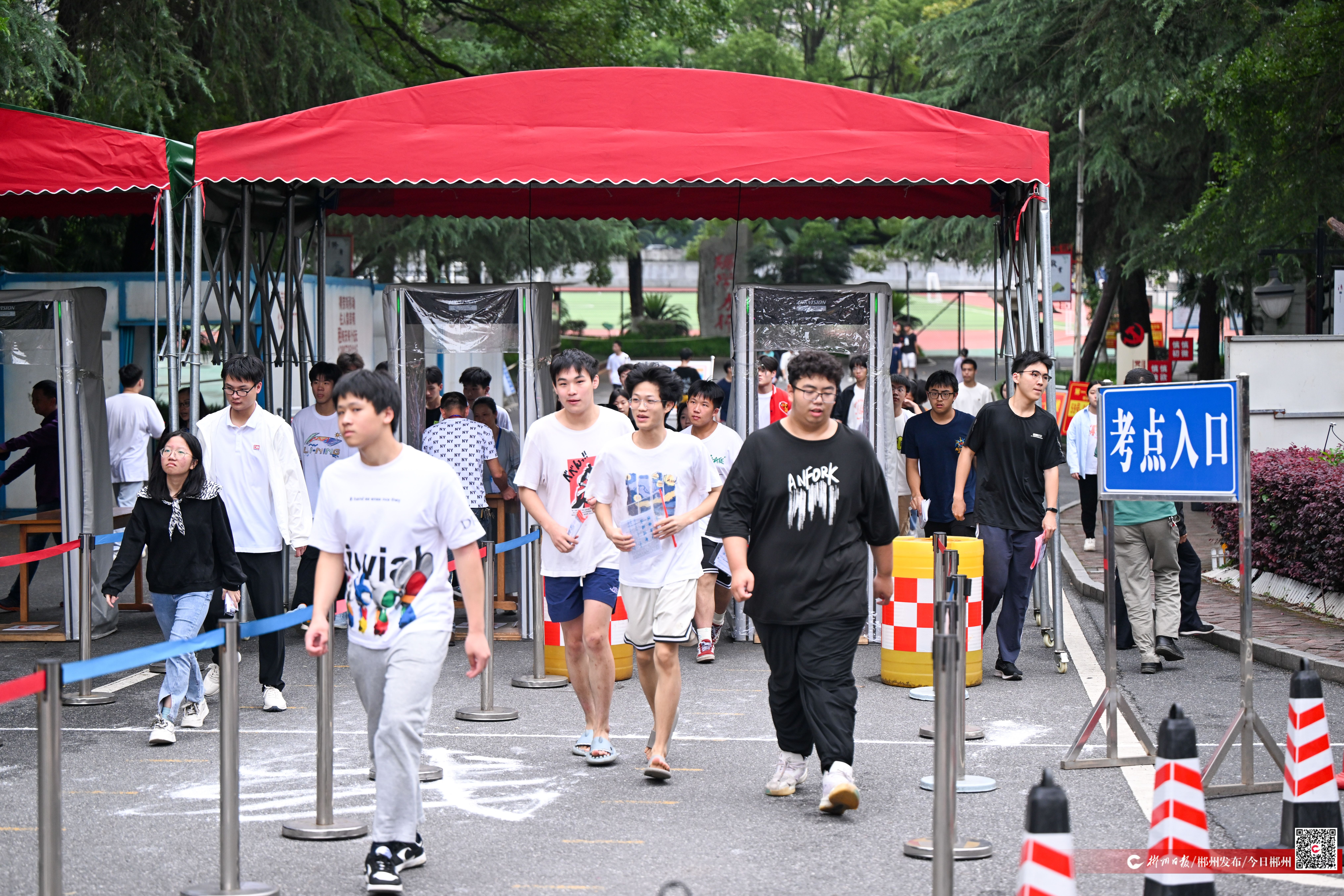 6月6日下午,在郴州市一中考點,考生們有序地通過安檢門,提前熟悉考場,進入考場試聽英語聽力,熟悉考試環(huán)境,為考試做好準備。
