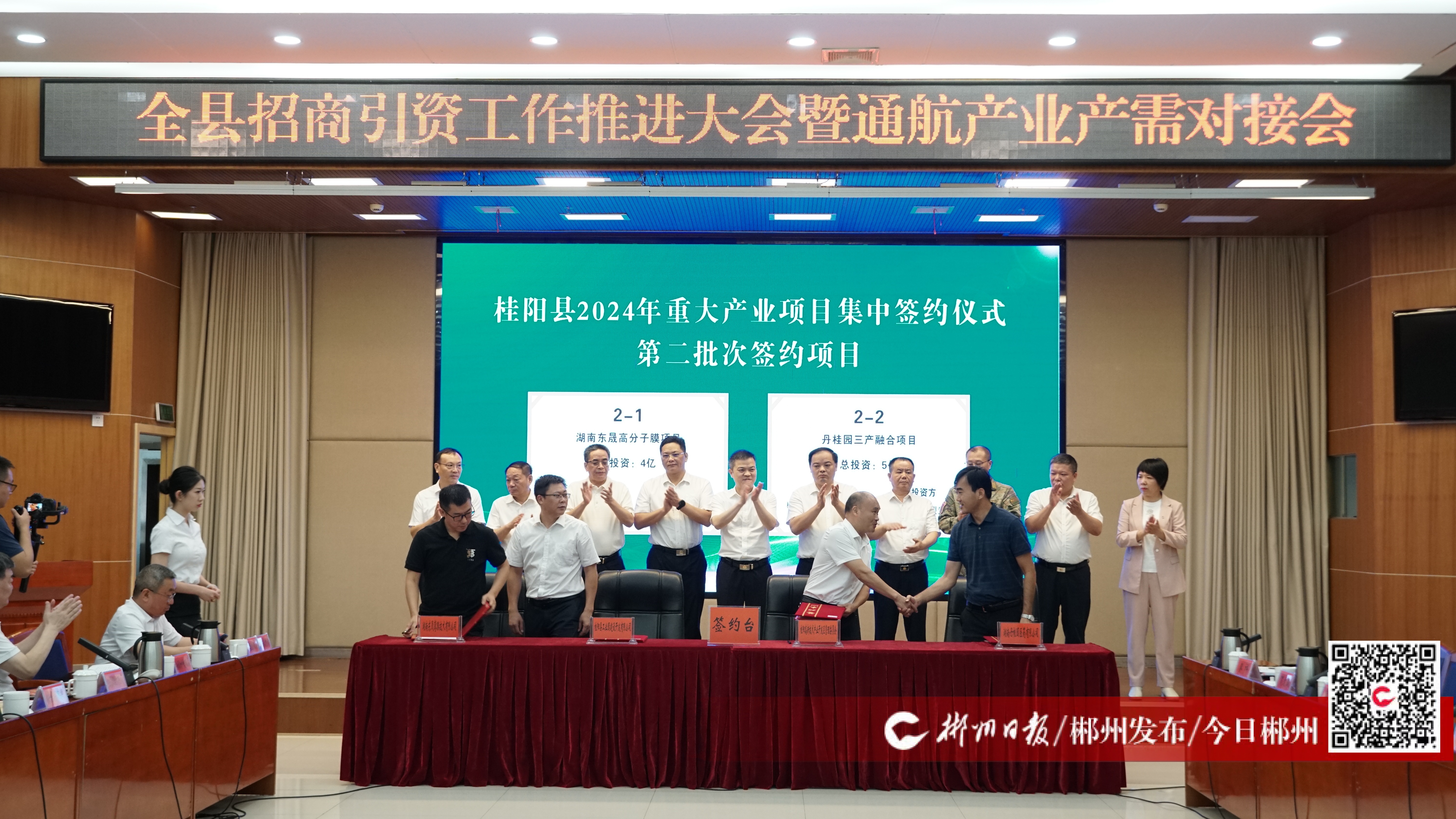 7月5日,桂陽縣召開招商引資工作推進大會暨通航產(chǎn)業(yè)產(chǎn)需對接會。會上舉行了桂陽縣2024年重大產(chǎn)業(yè)項目集中簽約儀式,共簽約項目15個,總投資112.6億元,覆蓋有色金屬、新能源新材料、電子信息、中藥材和食品醫(yī)藥等產(chǎn)業(yè)領(lǐng)域,為推動桂陽高質(zhì)量發(fā)展注入新活力、增添新動能。