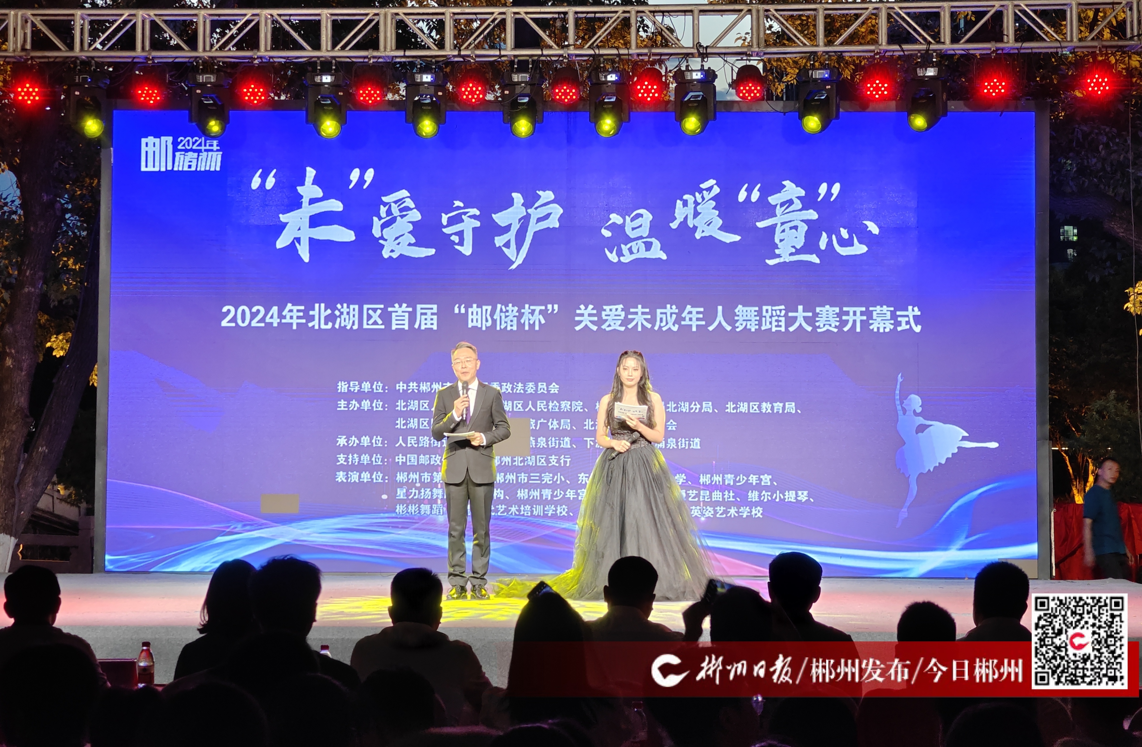 7月5日晚,“‘未’愛守護 溫暖‘童’心”2024年北湖區(qū)首屆“郵儲杯”關(guān)愛未成年人舞蹈大賽開幕式在北湖水月洲舉行。本次活動由中共郴州市北湖區(qū)委政法委員會指導(dǎo),北湖區(qū)人民法院、北湖區(qū)人民檢察院、郴州市公安局北湖分局、北湖區(qū)教育局、北湖區(qū)民政局、北湖區(qū)文旅廣體局、北湖區(qū)婦女聯(lián)合會主辦。