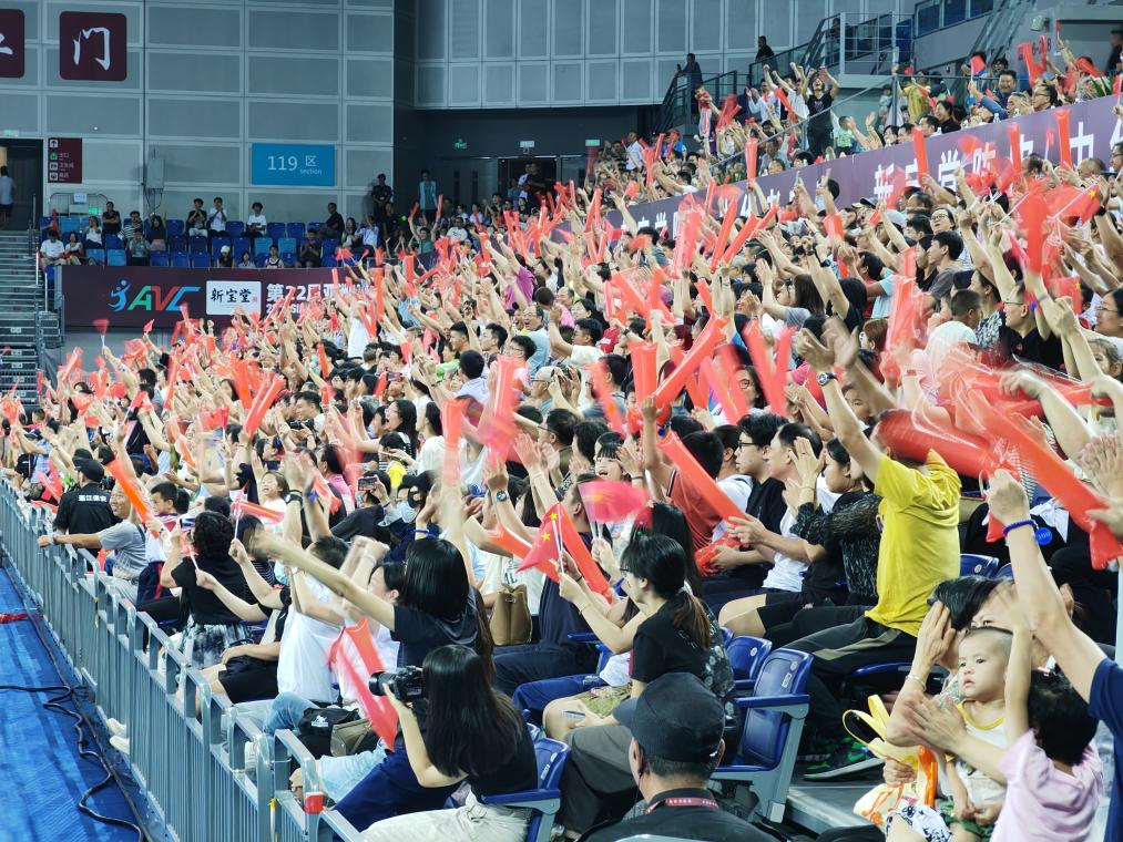 在全場球迷的助威聲中,中國隊在決勝局氣勢如虹取得13:5領(lǐng)先,此后日本隊連續(xù)得分追至13:10,關(guān)鍵時刻中國隊在暫停調(diào)整后連得兩分,以15:10獲勝,第13次登上該賽事最高領(lǐng)獎臺。