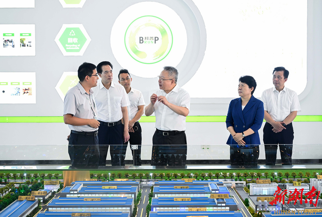 (7月10日,沈曉明來(lái)到湖南邦普了解廢舊電池回收綠色循環(huán)利用等情況。)