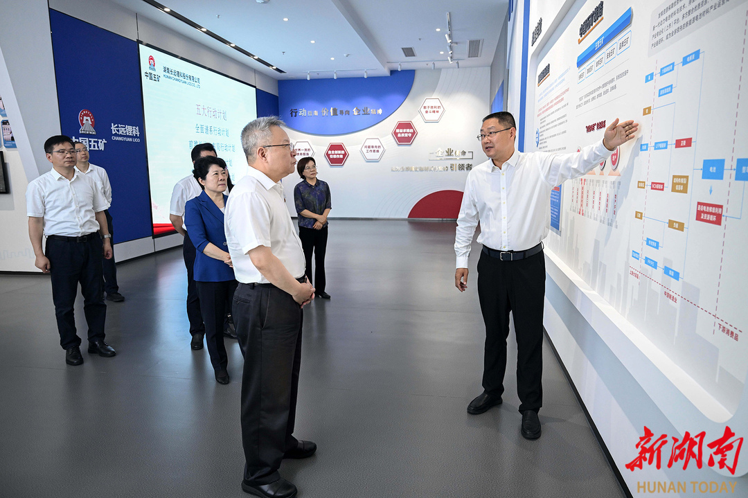 (7月10日,沈曉明來(lái)到長(zhǎng)沙礦冶研究院,了解技術(shù)研發(fā)和產(chǎn)業(yè)化進(jìn)展。)