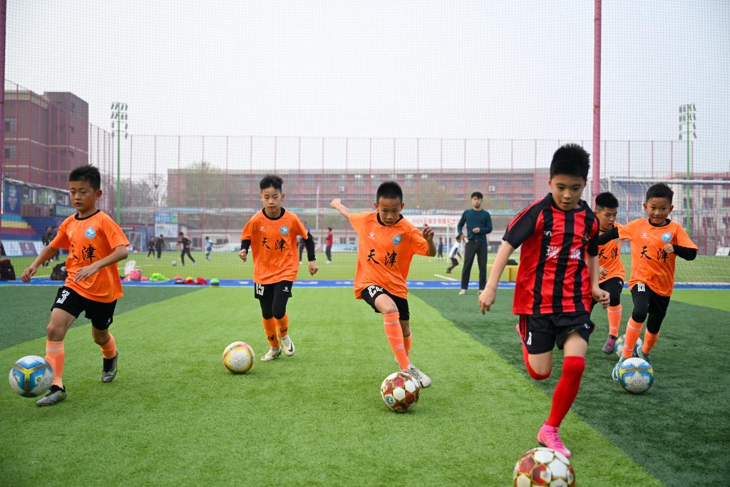 2024年4月11日,青少年球員在天津市足協(xié)青訓(xùn)基地訓(xùn)練。新華社記者 孫凡越 攝