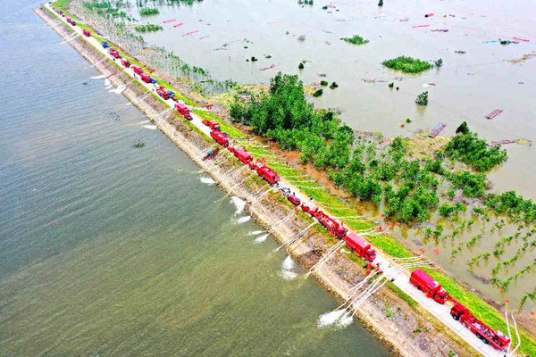 7月8日,岳陽市華容縣團洲垸決口完成封堵。按照上級部署,9日上午,郴州市消防救援支隊從集結(jié)點出動2臺排澇車、20名消防救援人員開赴任務(wù)點團洲鄉(xiāng)團南村。
