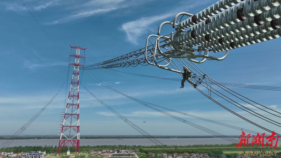 ▲7月23日,國網湖南超高壓輸電公司對1000千伏荊瀟線帶電檢修。羅坤 供圖