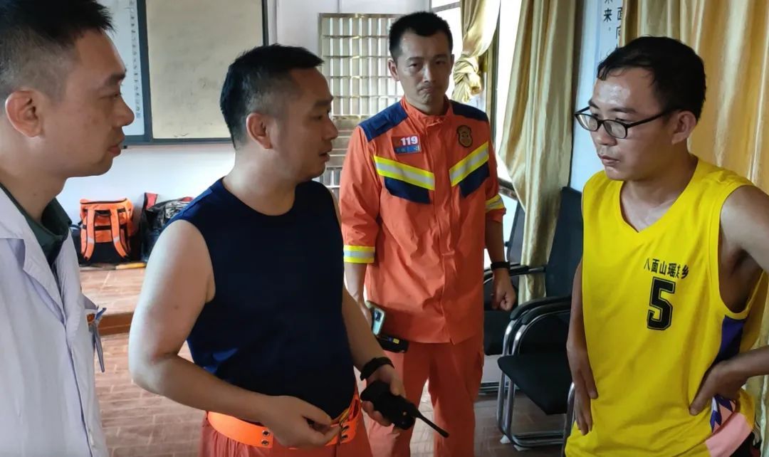 救援人員和醫(yī)護人員多次與歐陽瓊杰(右側(cè)穿黃色背心者)商討救援方案(郴州市廣播電視臺供圖)