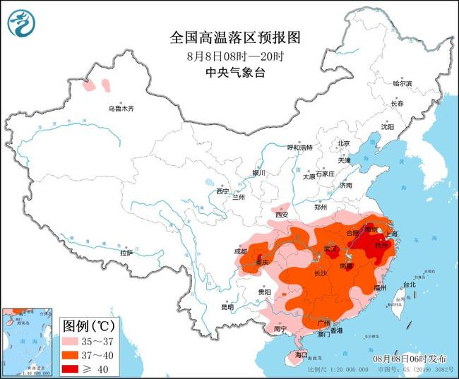 預(yù)計(jì)8月8日白天,四川東部、重慶、陜西中南部、黃淮南部、江漢、江淮、江南、華南及貴州東部等地有35℃以上高溫天氣,其中,四川東南部、重慶大部、河南東南部、安徽中南部、江蘇中南部、上海、浙江、湖北大部、湖南大部、江西、福建中西部、廣西東部、廣東中北部等地部分地區(qū)最高氣溫37℃以上,安徽南部、江蘇西南部、浙江中西部等地局地可達(dá)40℃以上。