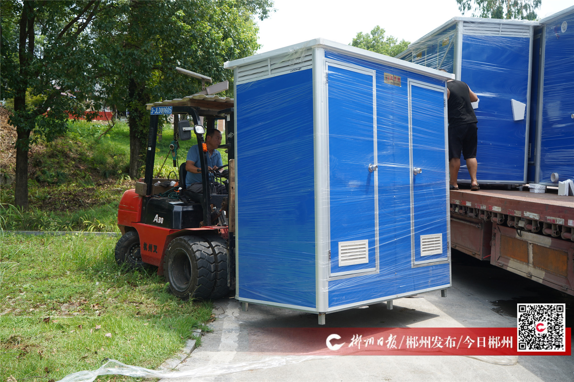 8月10日上午,首批40個簡易公廁抵達(dá)資興市,開始施工安裝。