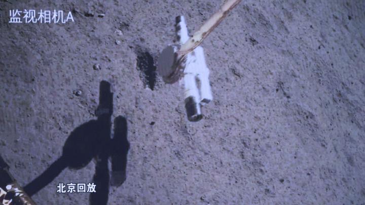 ▲這是2020年12月4日,國(guó)家航天局公布的探月工程嫦娥五號(hào)探測(cè)器在月球表面展示國(guó)旗的照片。嫦娥五號(hào)著陸器和上升器組合體全景相機(jī)環(huán)拍成像,五星紅旗在月面成功展開(kāi),此外圖像上方可見(jiàn)已完成表取采樣的機(jī)械臂及采樣器。新華社發(fā)(國(guó)家航天局供圖)