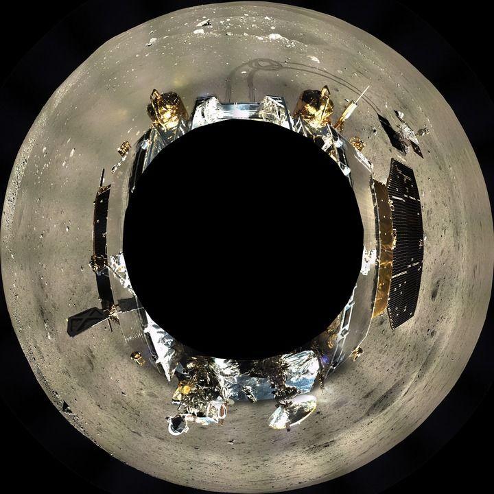 ▲這是嫦娥三號(hào)地形地貌相機(jī)拍攝的著陸器周邊360°范圍的全景鑲嵌影像圖,采用方位投影方式表達(dá)(2013年12月17日至12月18日攝)。新華社發(fā)