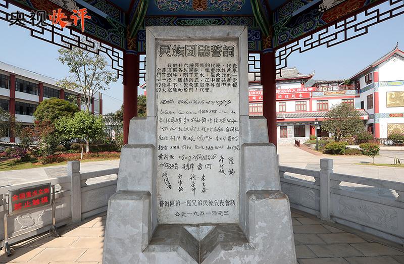 普洱民族團(tuán)結(jié)誓詞碑被譽(yù)為“新中國(guó)民族團(tuán)結(jié)第一碑”。1950年,云南普洱專區(qū)各族代表應(yīng)邀到北京參加新中國(guó)成立一周年慶祝活動(dòng),受到毛澤東等黨和國(guó)家領(lǐng)導(dǎo)人親切接見(jiàn)。1951年元旦,普洱專區(qū)各族群眾舉行盟誓大會(huì),以少數(shù)民族的風(fēng)俗習(xí)慣立下誓詞碑。盟誓立碑后,各民族兄弟姐妹用實(shí)際行動(dòng)踐行“一心一德跟黨走”的錚錚誓言,推動(dòng)邊疆地區(qū)經(jīng)濟(jì)社會(huì)發(fā)展取得了歷史性成就,書寫了民族團(tuán)結(jié)進(jìn)步生動(dòng)篇章。