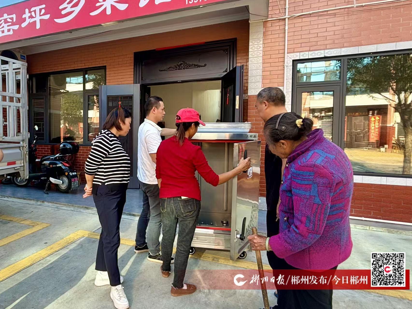 一臺一米多高的蒸飯柜被工人小心翼翼地從貨車上搬下,落地的那一刻,李鐵毛滿臉笑容。他與幾位村民圍上前去,紛紛伸出手,撫摸著這個新家伙。