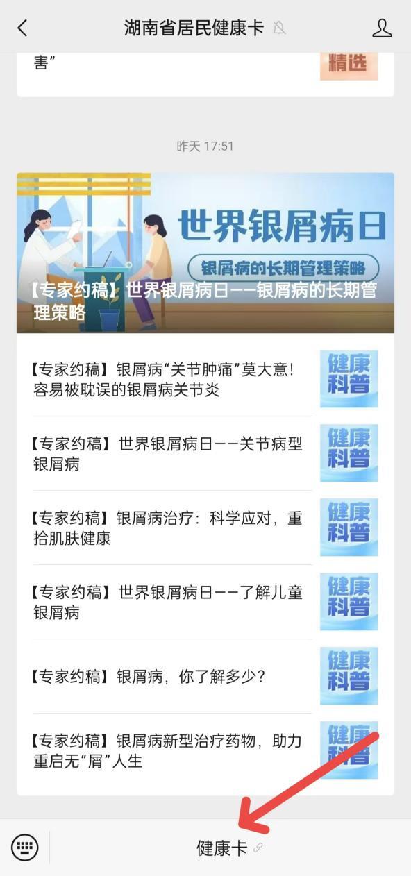 1.在微信搜索欄搜索進入“湖南省居民健康卡”微信公眾號;