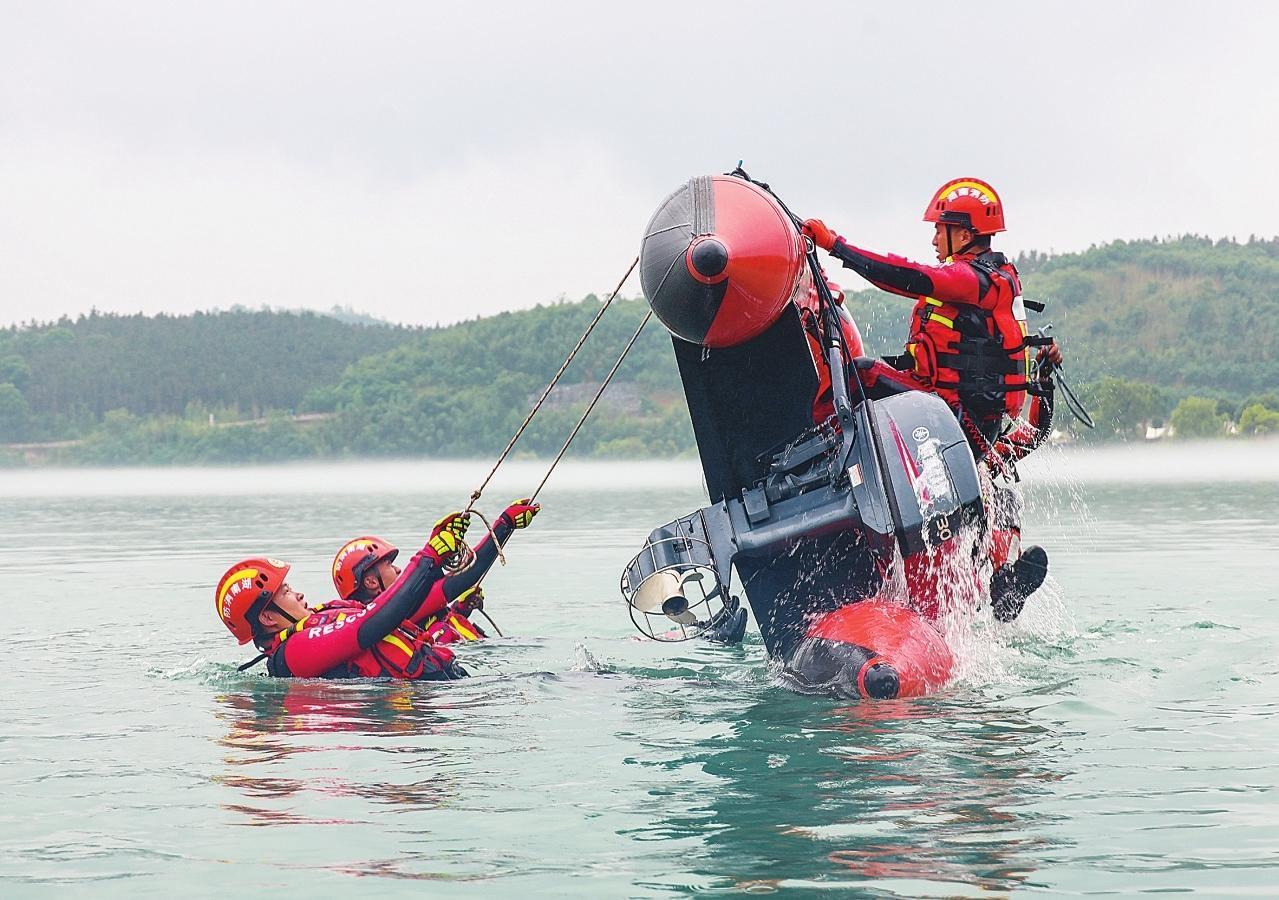 郴州市消防救援支隊在翠江碼頭開展水域救援專業(yè)隊伍拉動演練 (駱靜 張夢茹 攝)