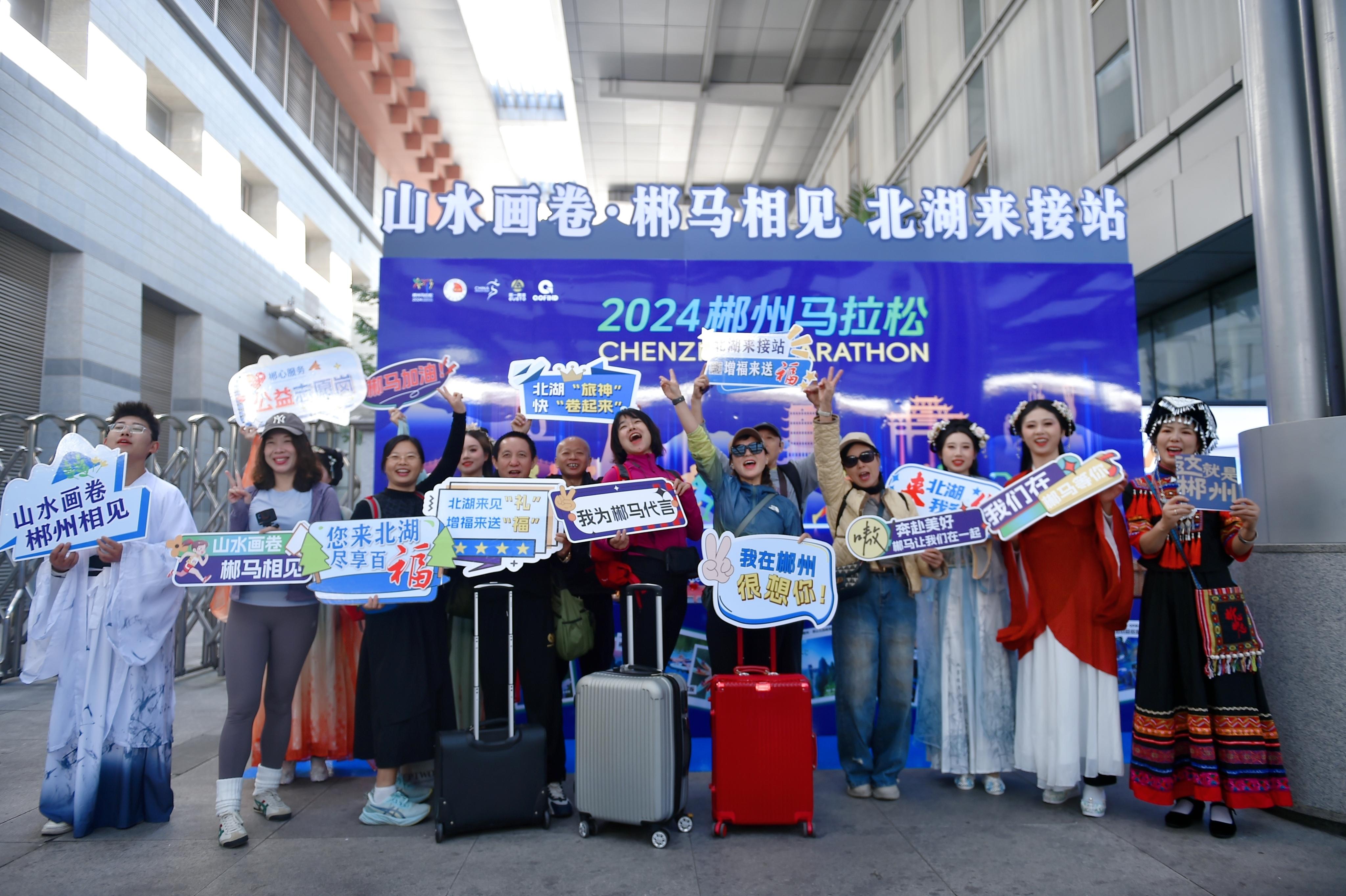 “歡迎來到福城郴州!”“您憑參賽號(hào)查詢成功的頁面或報(bào)名參賽成功短信即可免費(fèi)搭乘接駁車輛”……11月8日,隨著2024郴州馬拉松賽事的臨近,參賽選手陸續(xù)抵郴。在郴州西站出站口處的“郴心服務(wù)”接站點(diǎn),來自北湖區(qū)的志愿者熱情地為參賽選手及來郴旅客提供馬拉松賽事咨詢及旅游咨詢服務(wù),宣傳推介郴州文旅產(chǎn)品,并送上溫馨祝福。