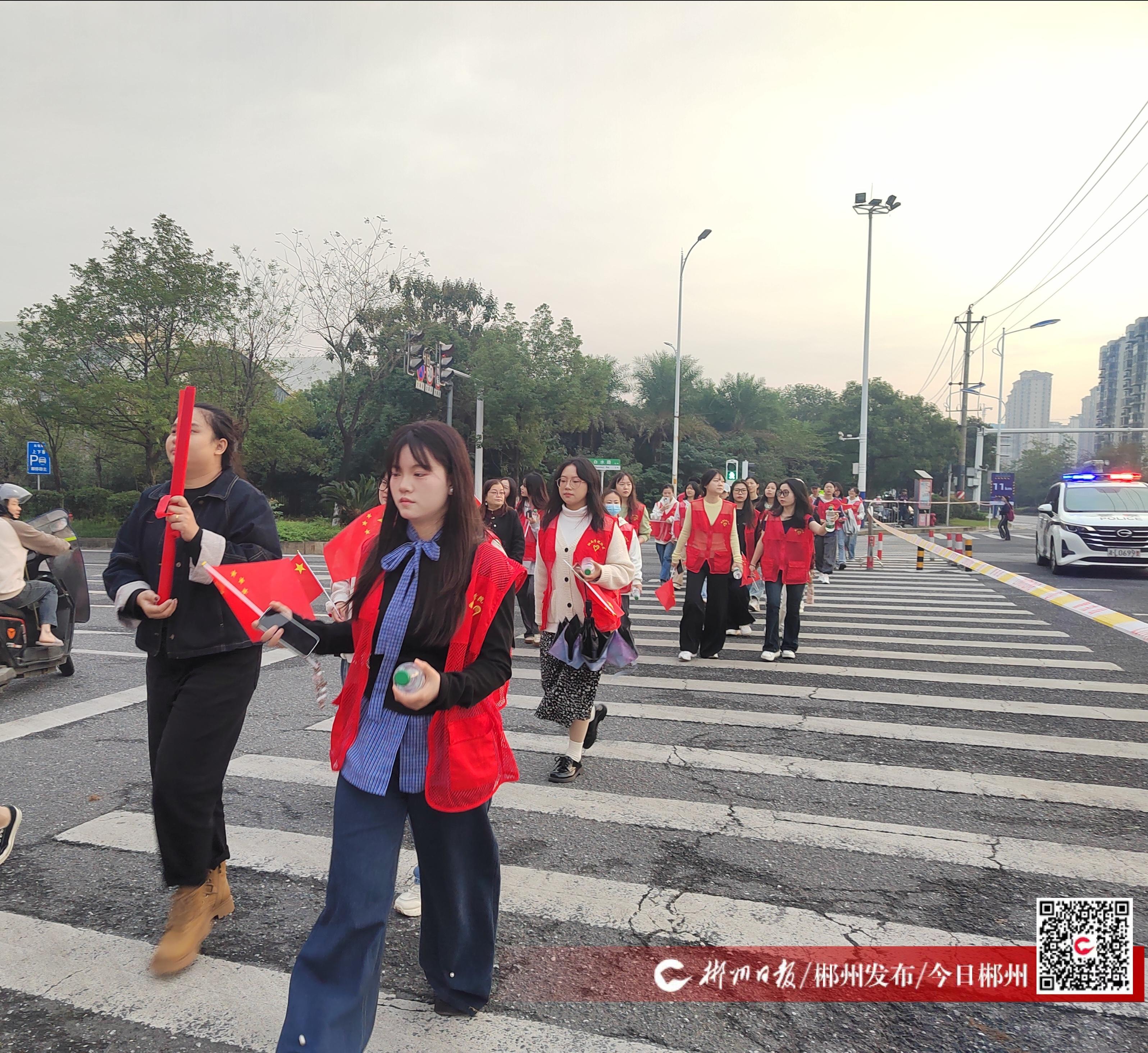 11月10日清早,在馬拉松賽事補(bǔ)給點(diǎn)等地,來自湘南學(xué)院的數(shù)十年青年志愿者早早地做好準(zhǔn)備,為參賽選手做好志愿服務(wù)?!拔覀兘裉煳妩c(diǎn)半就來了,已經(jīng)提前幾天準(zhǔn)備好服裝、證件等。這是我第一次參與馬拉松志愿服務(wù),希望能發(fā)揮自己的熱情幫助參賽者,更好地指引他們坐車、問路、找?guī)?、去醫(yī)療點(diǎn)等?!毕婺蠈W(xué)院大學(xué)生志愿者李明杰說。