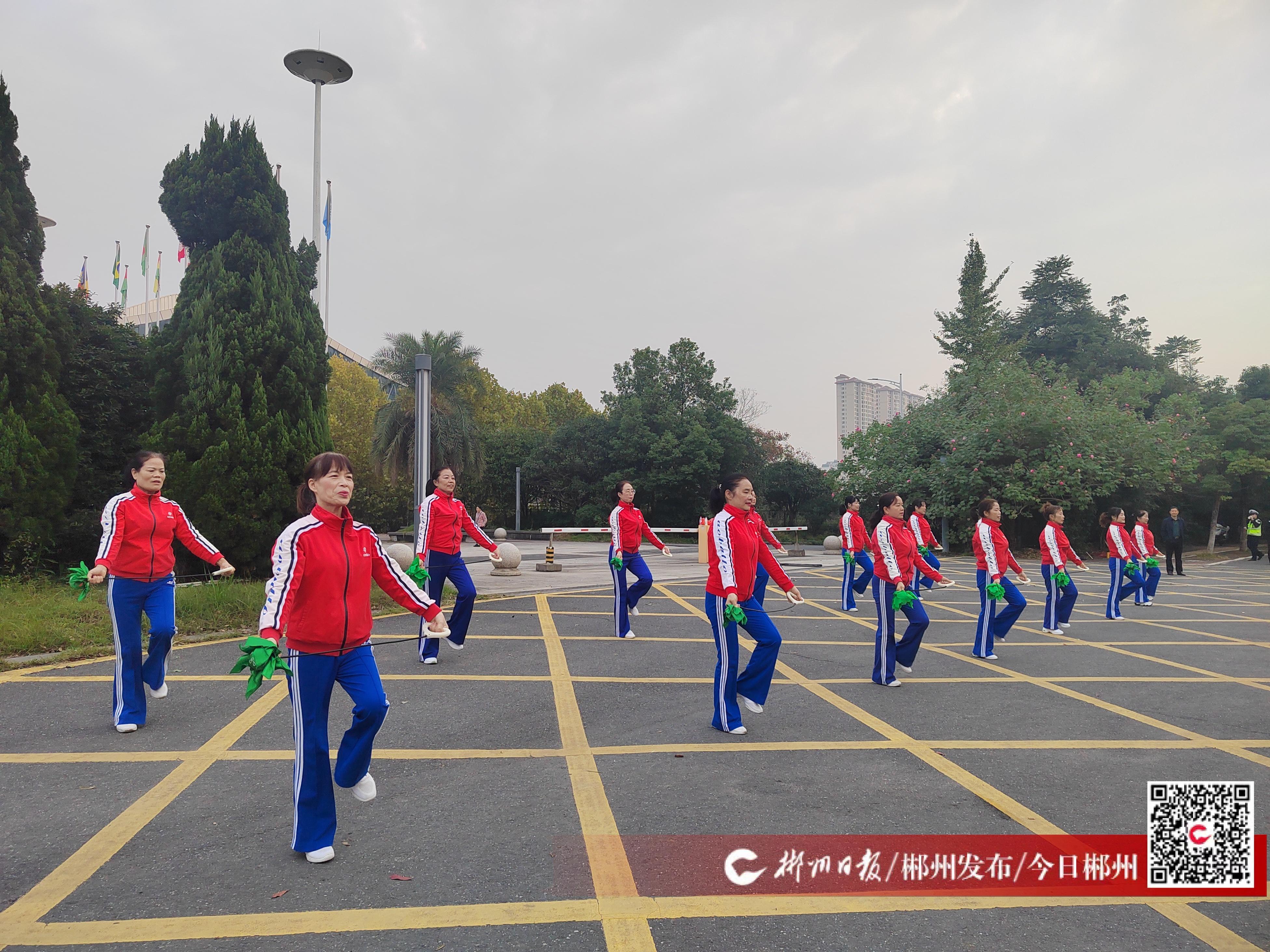 11月10日,在首屆郴州馬拉松賽事現(xiàn)場的會展中心氛圍點,來自安仁縣柔力球協(xié)會的老年人們正在表演健身球。