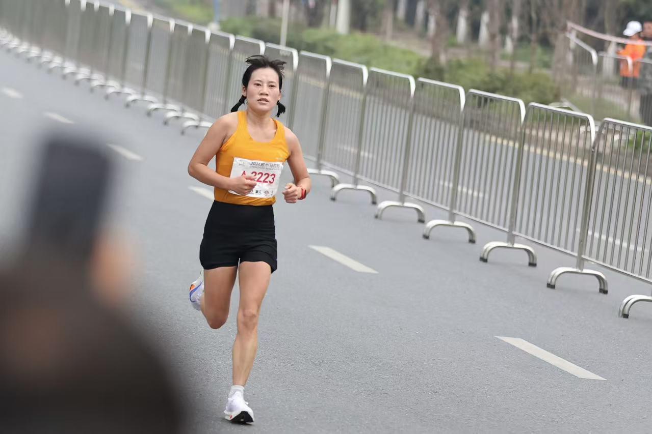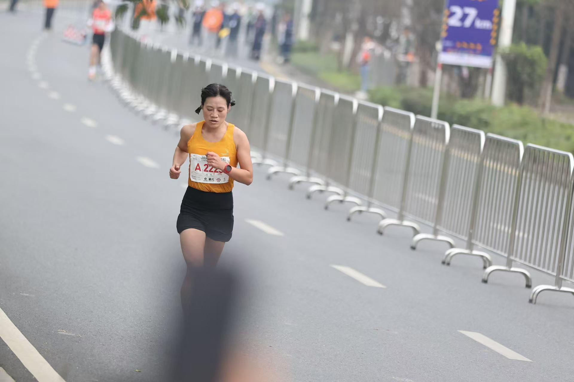 11月10日上午9時16分許,在 27km 計時點處,郴州馬拉松賽場上振奮人心的精彩時刻來臨,27KM計時點首次出現(xiàn)女選手身影!只見郴馬選手肖艷步伐堅定、眼神專注地向著終點堅定邁進,英姿颯爽地經(jīng)過 27km 計時點處,成為賽道上一道亮麗的風(fēng)景線,引得現(xiàn)場觀眾紛紛為她加油喝彩。最終,肖艷不負眾望,以2小時52分19秒的成績奪得馬拉松女子組冠軍。