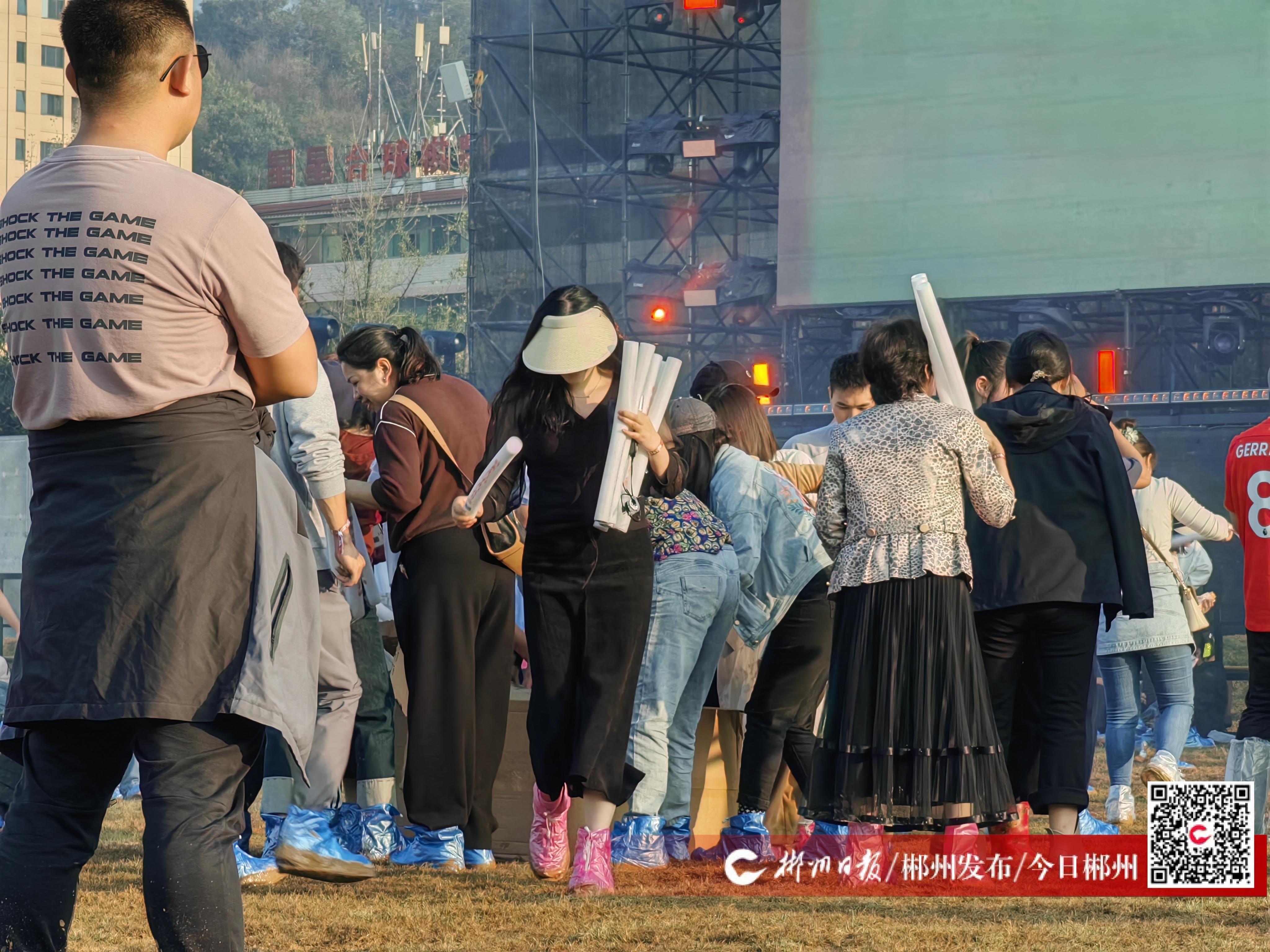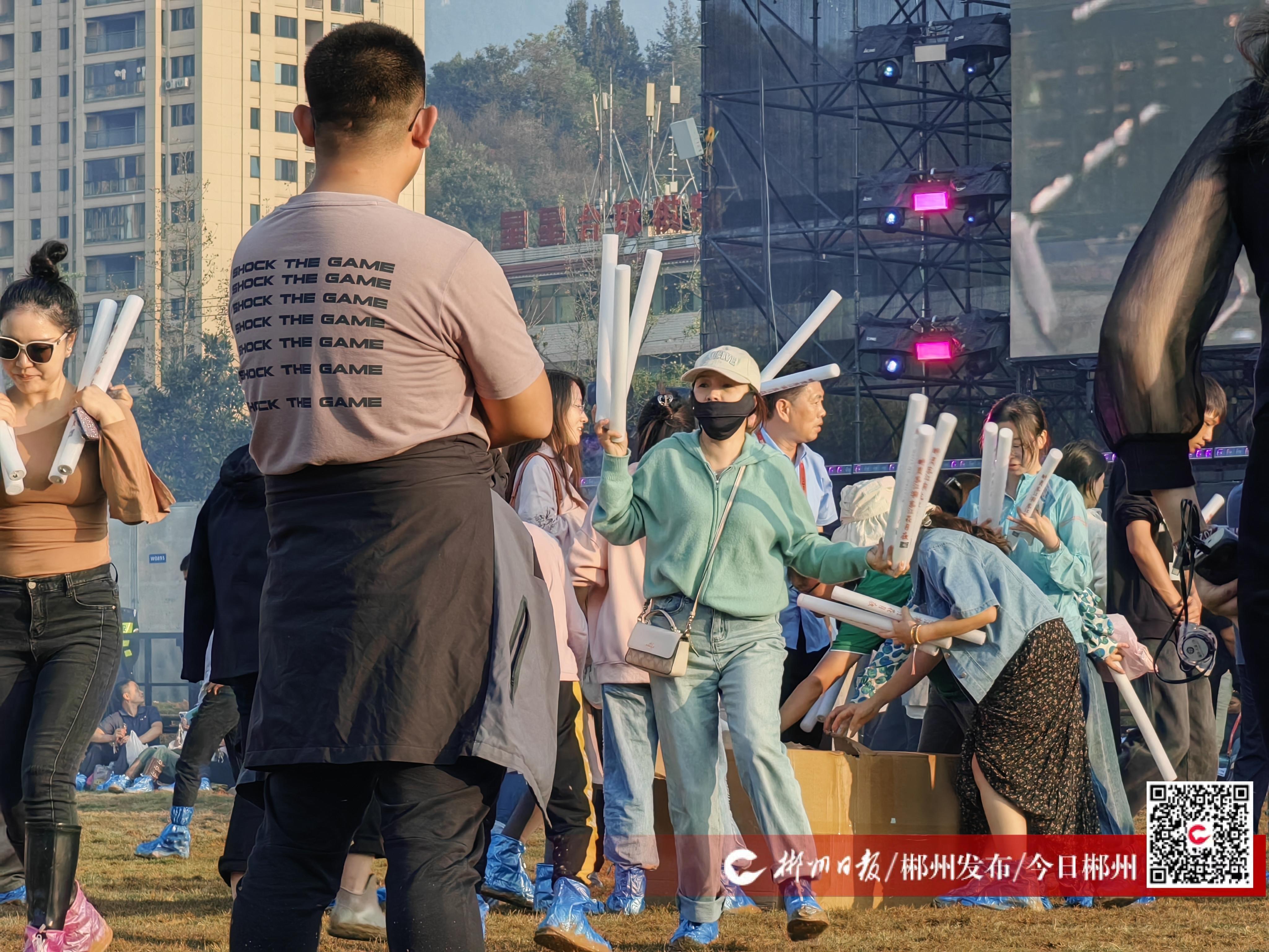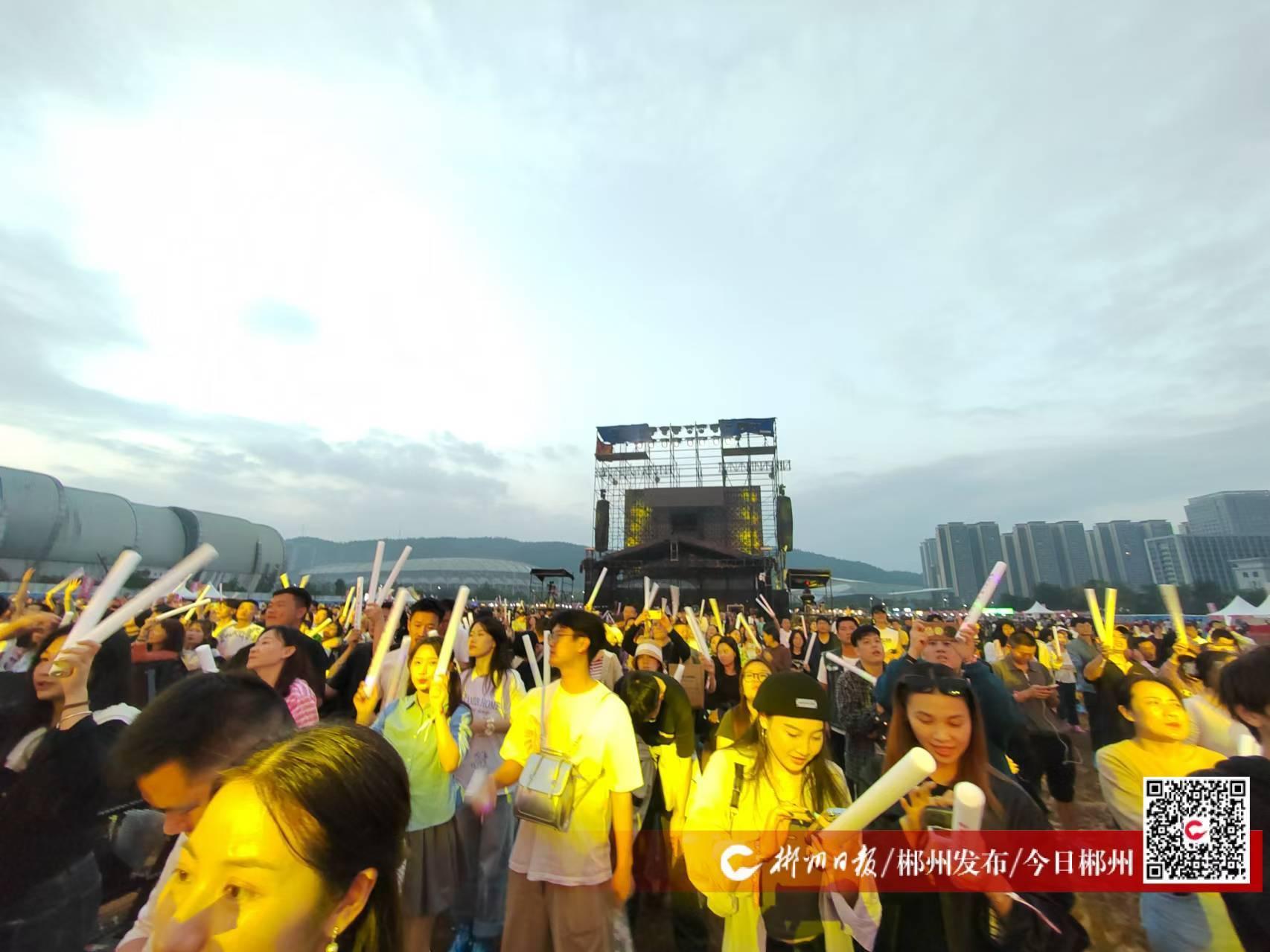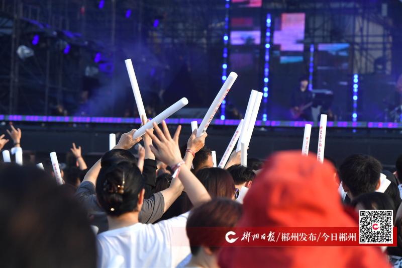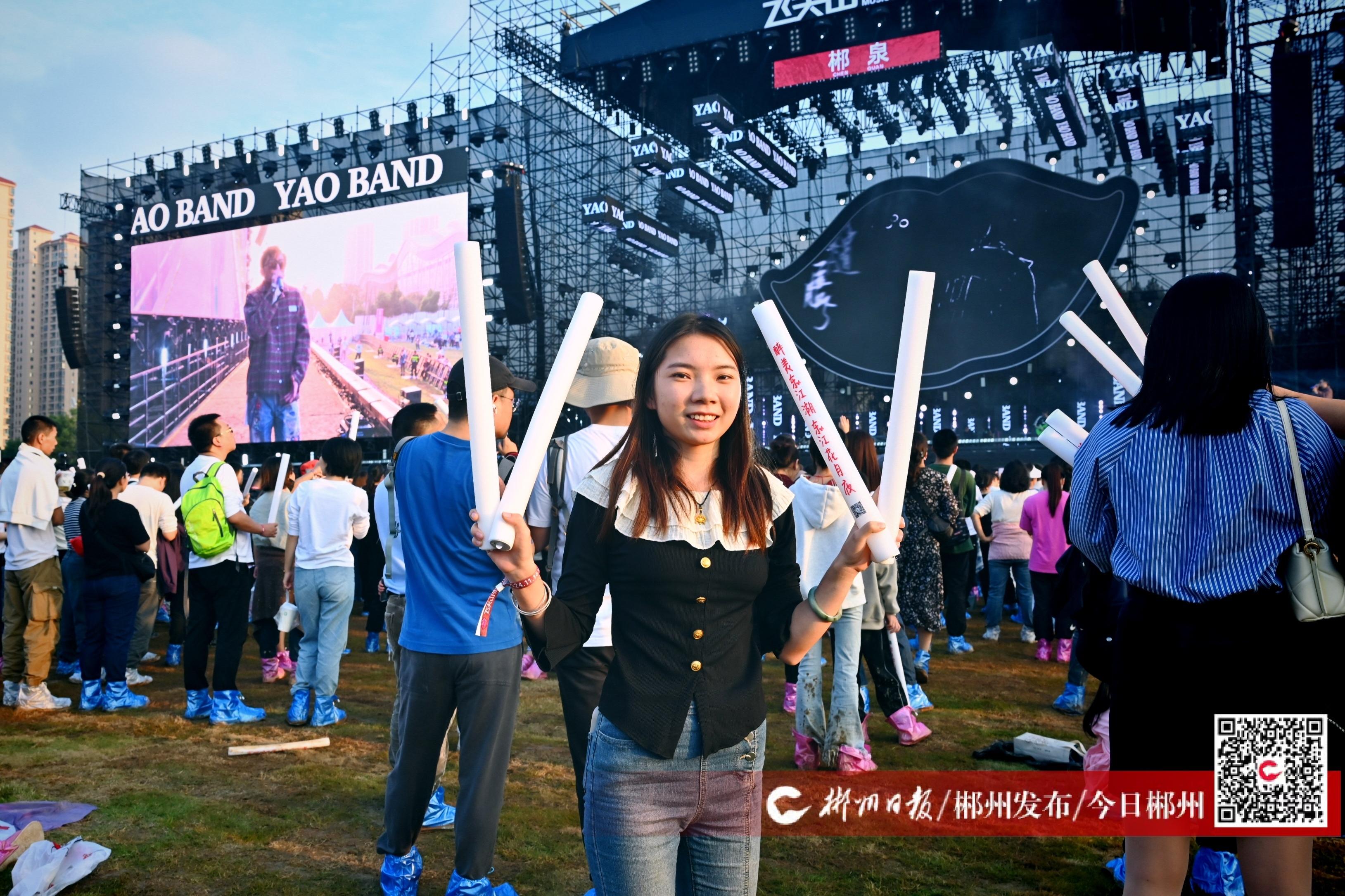 ▲樂迷們領(lǐng)取熒光棒,盡情揮舞。黃靖雯 攝