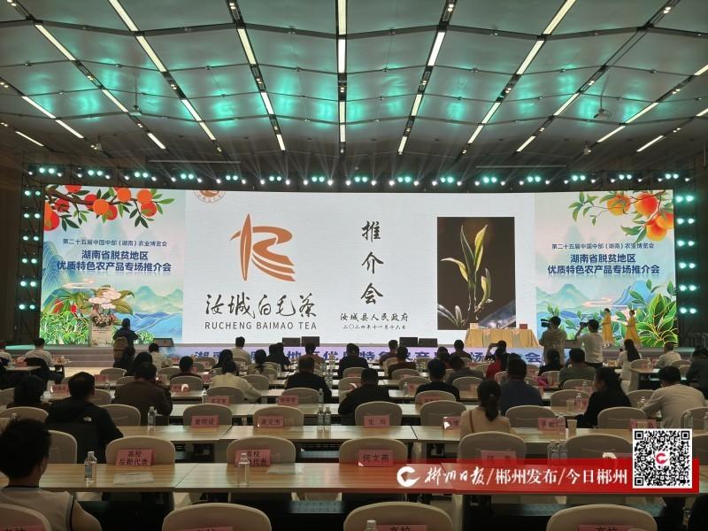 11月16日,湖南省脫貧地區(qū)優(yōu)質(zhì)特色農(nóng)產(chǎn)品專場推介會在長沙舉行,汝城白毛茶指揮部副指揮長徐春雄以《紅色汝城 白毛茶香》為題,作專場推介。