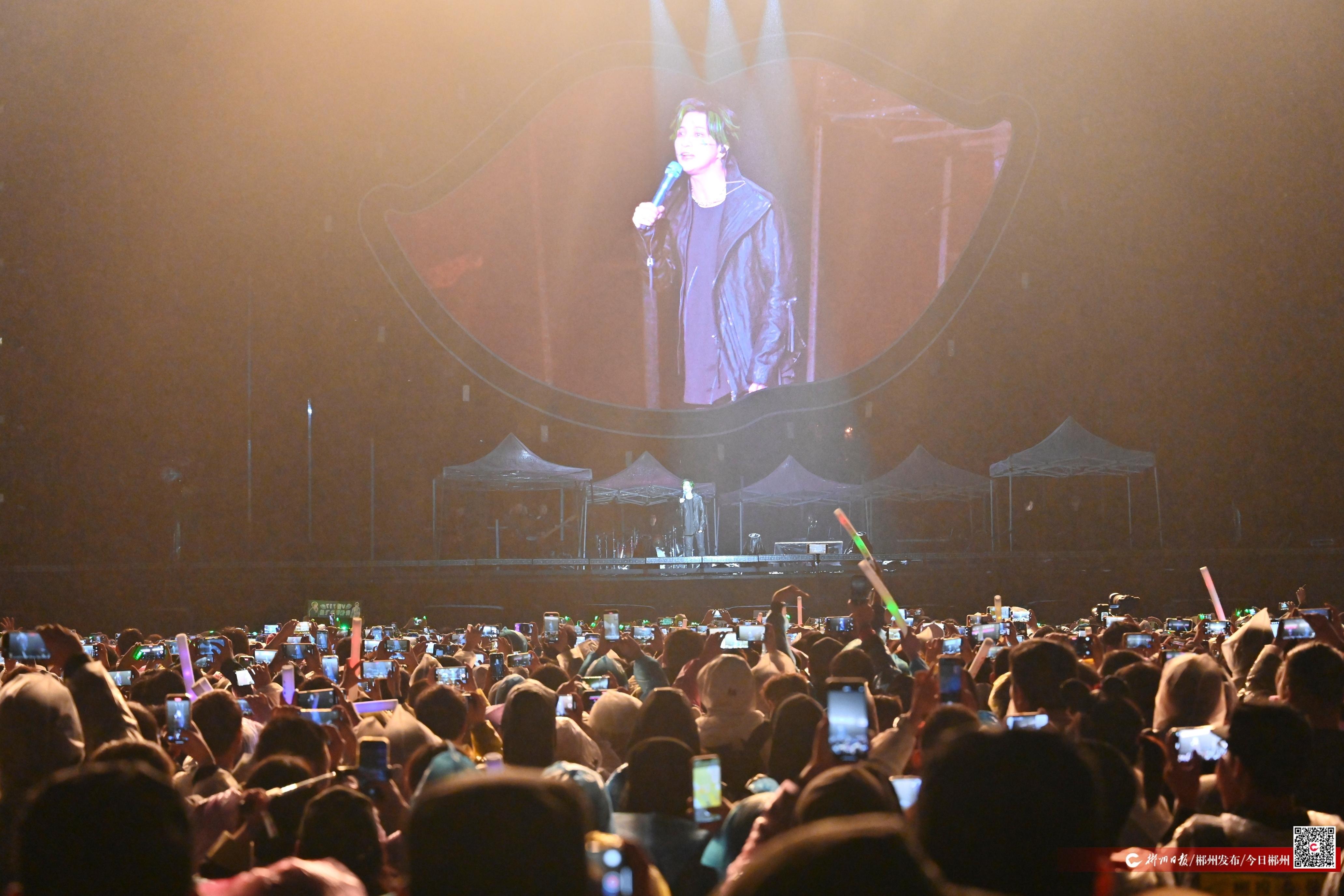 歌手王嘯坤在演唱間隙,與現(xiàn)場歌迷熱烈互動,分享在郴州的打卡心得。他說:“郴州的夜生活很豐富,裕后街很漂亮,郴州的魚粉、殺豬粉很好吃,推薦大家去品嘗一下郴州美食。”他還說,郴州是一座非常有歷史底蘊的城市,希望以后能再來郴州、暢游郴州。