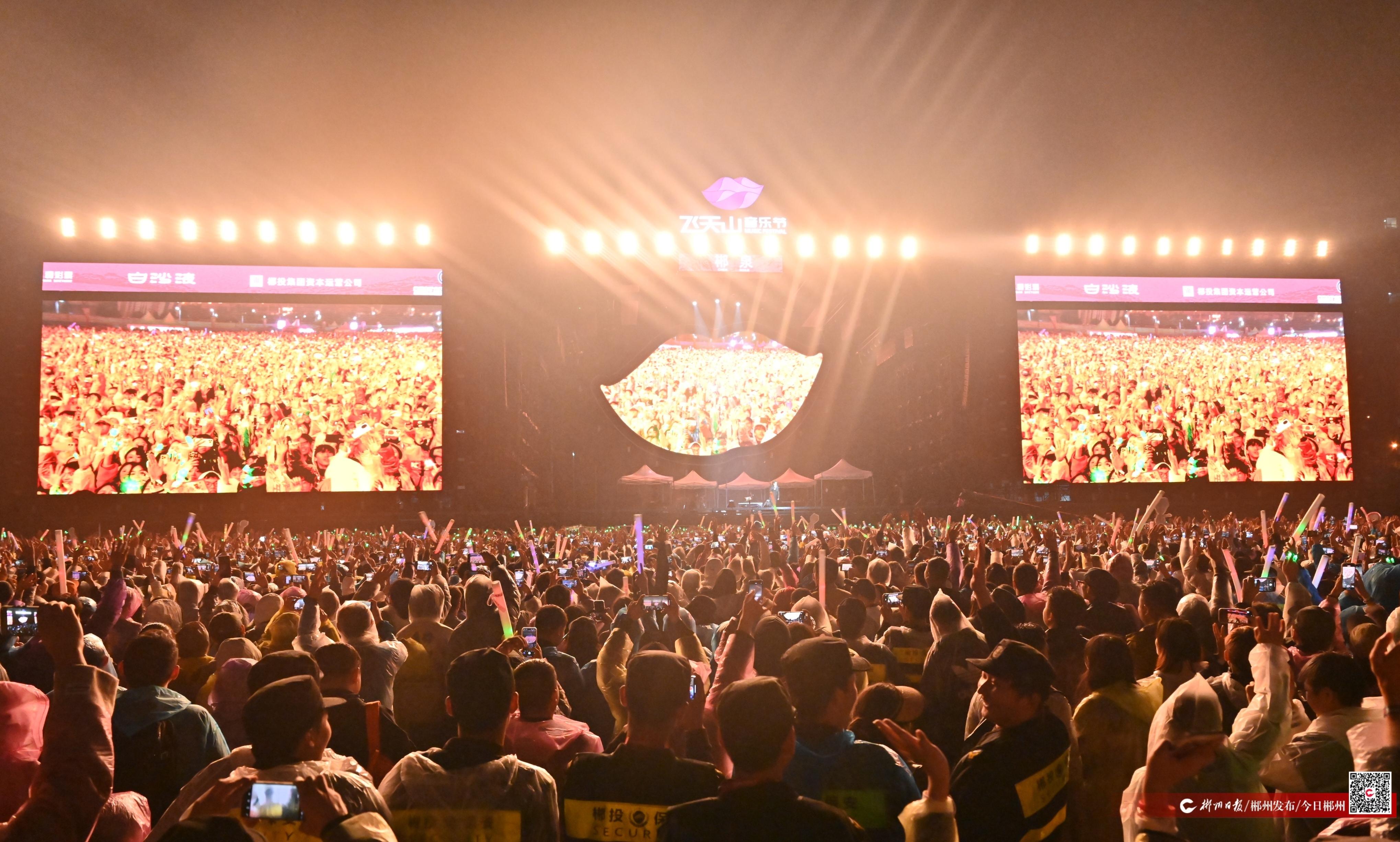 在此次飛天山音樂節(jié)中,“你好郴州”“謝謝郴州”“再見郴州”“你好飛天山”等字樣及旅游宣傳片多次出現(xiàn)在演出節(jié)目熒屏中,向外地游客展示了郴州形象,傳播了郴州“好聲音”。