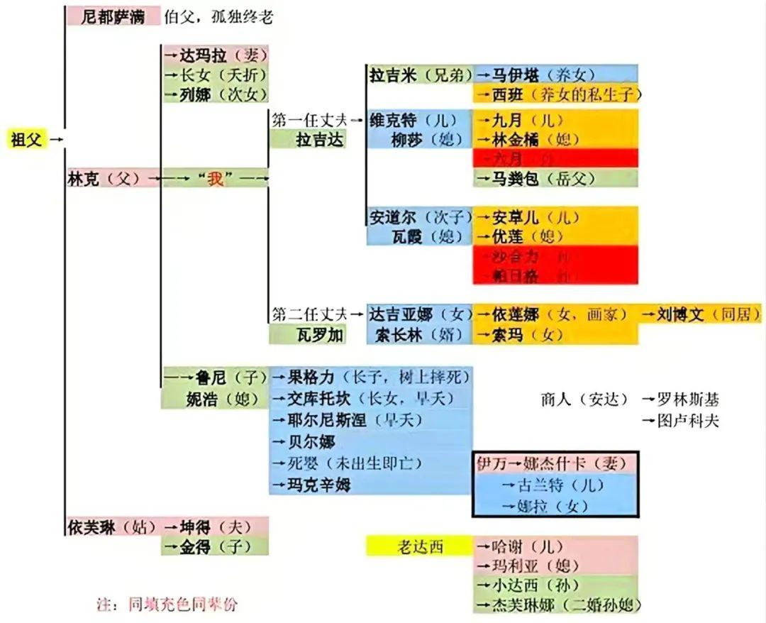 歪鼻子女人依芙琳因?yàn)樽约旱幕橐霾恍?,而對別人的幸福真情充滿嫉妒和鄙視,尖酸刻薄、性情剛烈,逼死了自己的兒子,又葬送了自己的人生;