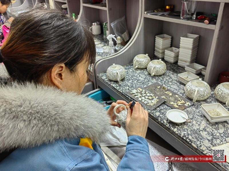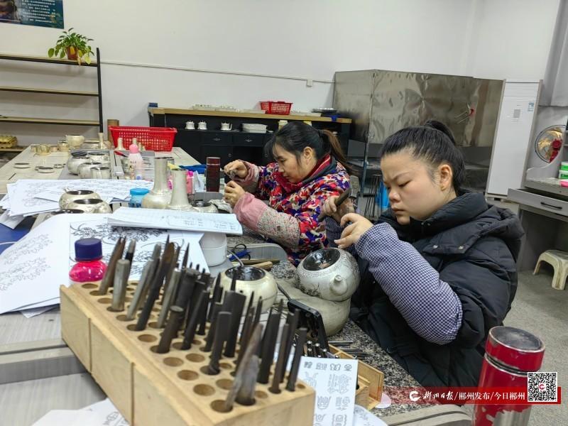 循聲而去,是負(fù)責(zé)鏨刻的姑娘們正專心致志地敲擊手中的銀壺。一下、一下、又一下……繁復(fù)的花紋逐漸繞滿壺身。
