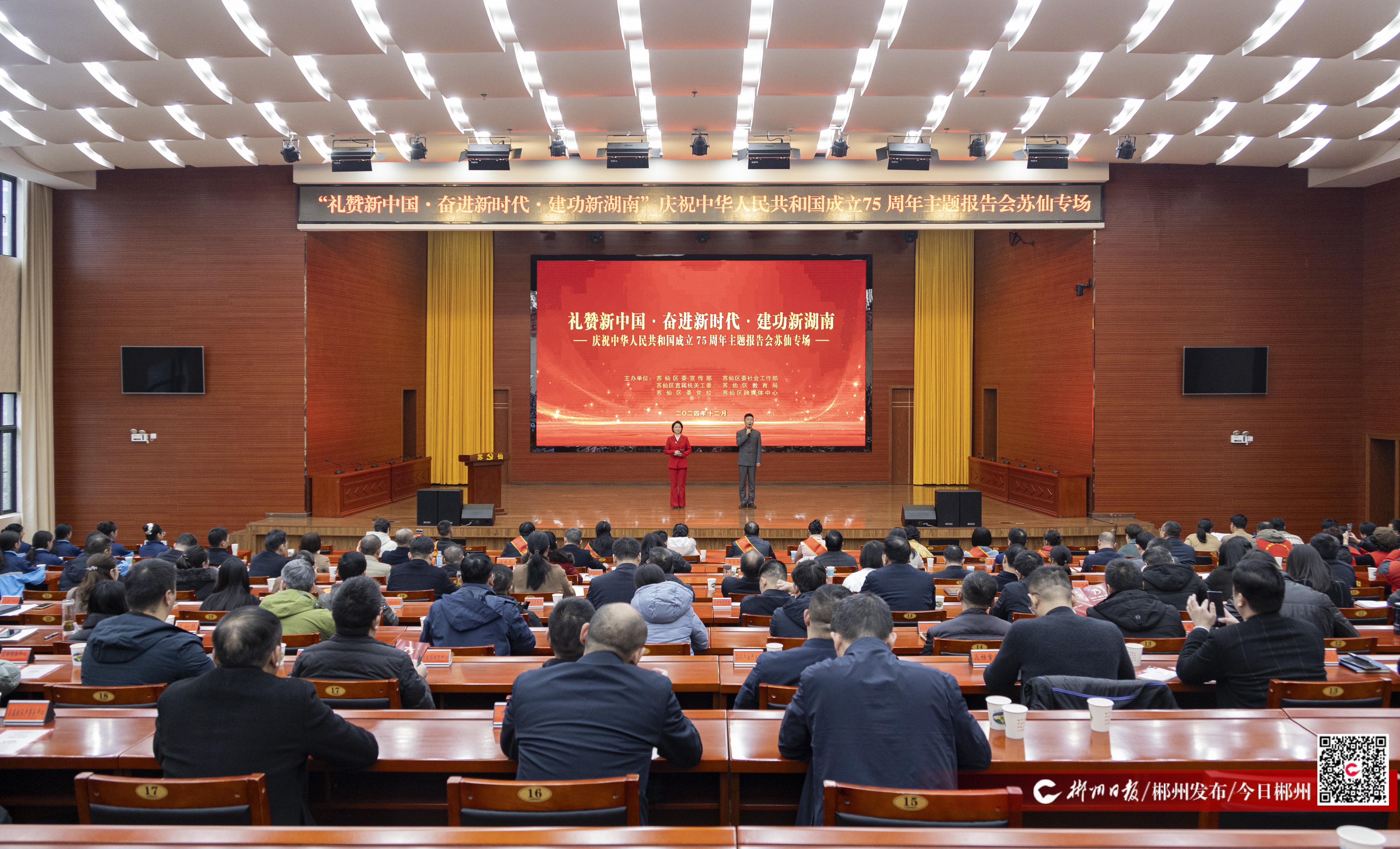 12月13日,蘇仙區(qū)開(kāi)展“禮贊新中國(guó)·奮進(jìn)新時(shí)代·建功新湖南”慶祝中華人民共和國(guó)成立75周年主題報(bào)告會(huì),蘇仙區(qū)干部群眾近200人參與活動(dòng)。