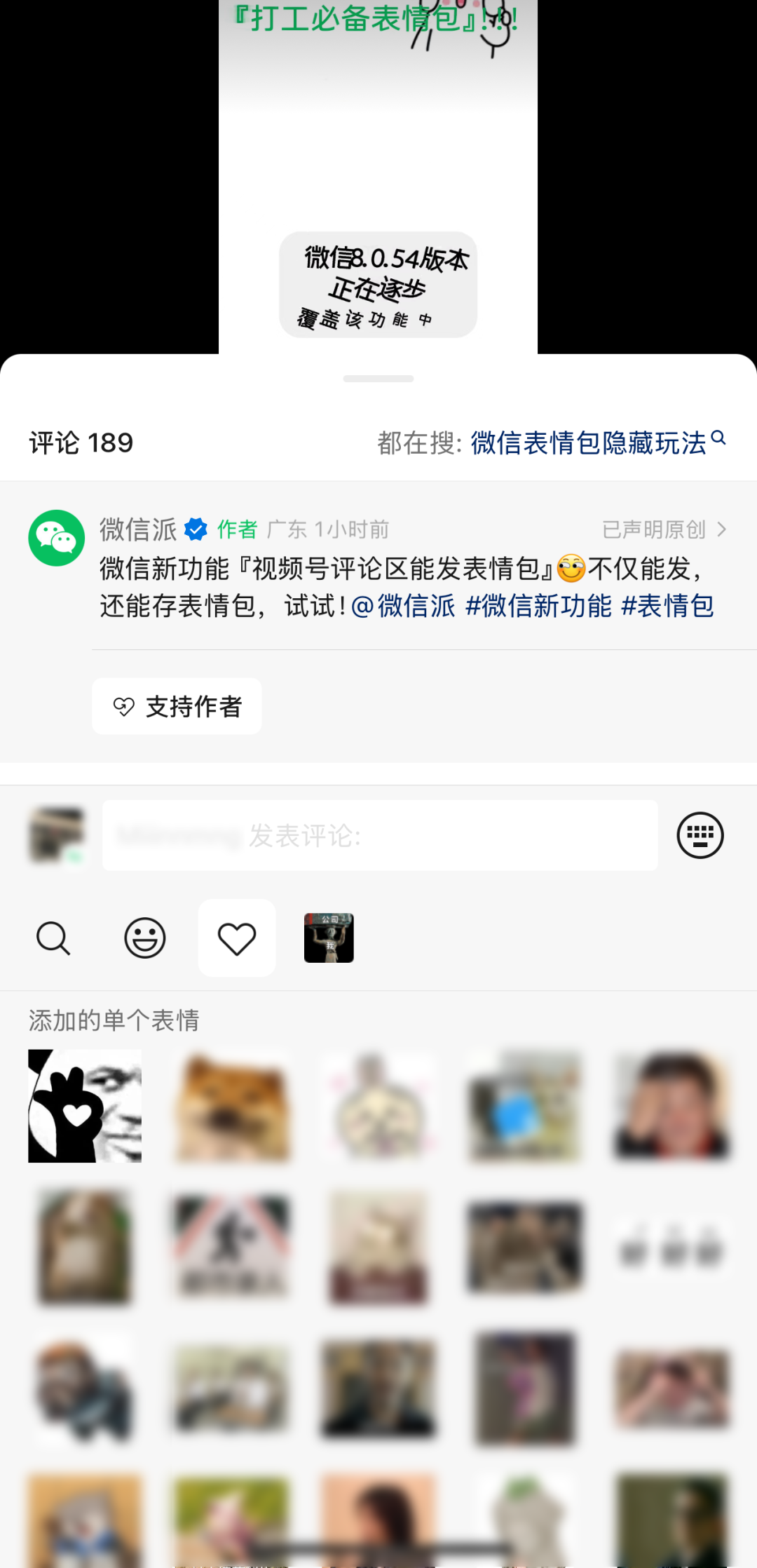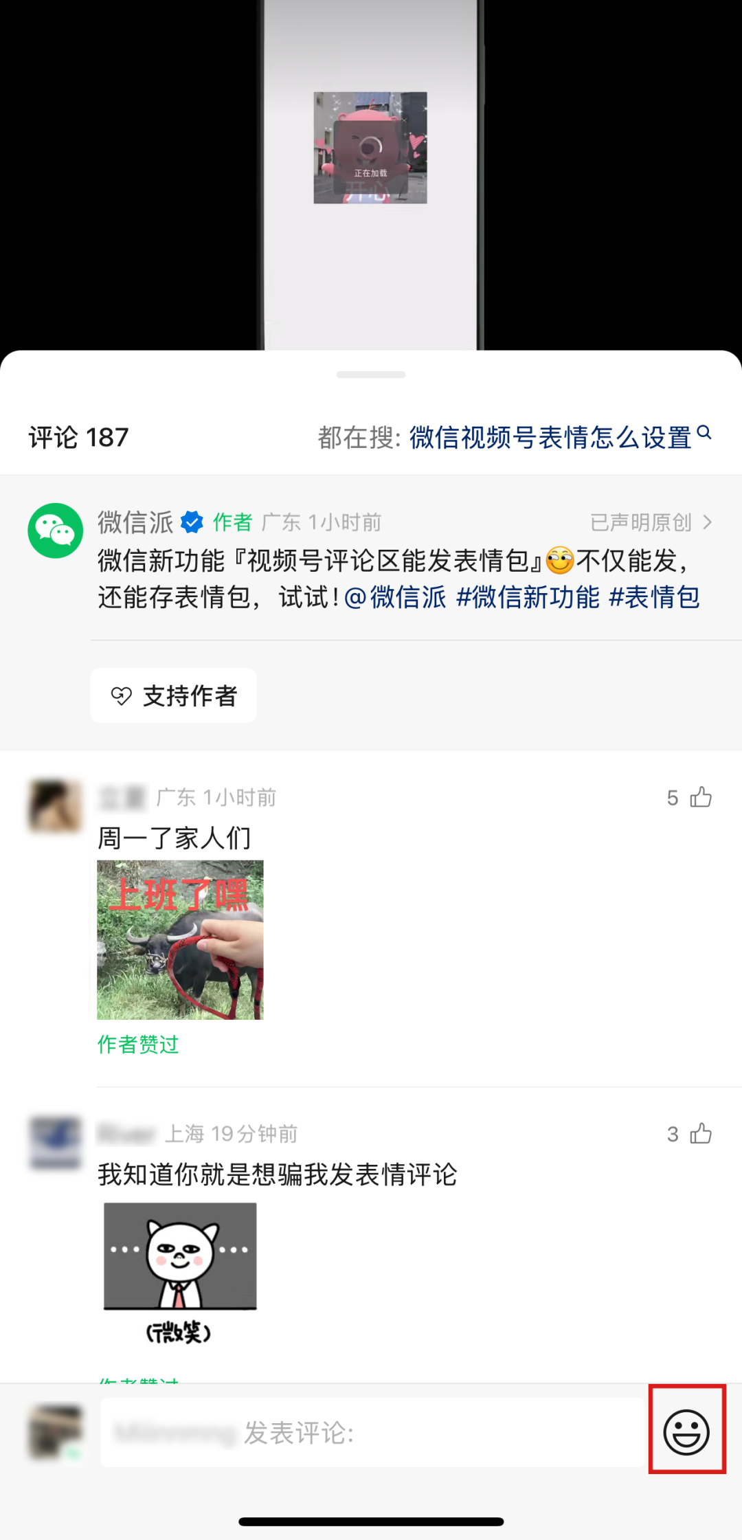 12月23日,據(jù)“微信派”最新消息,微信官方宣布又一新功能上線,微信視頻號(hào)評(píng)論區(qū)可以發(fā)表情包。