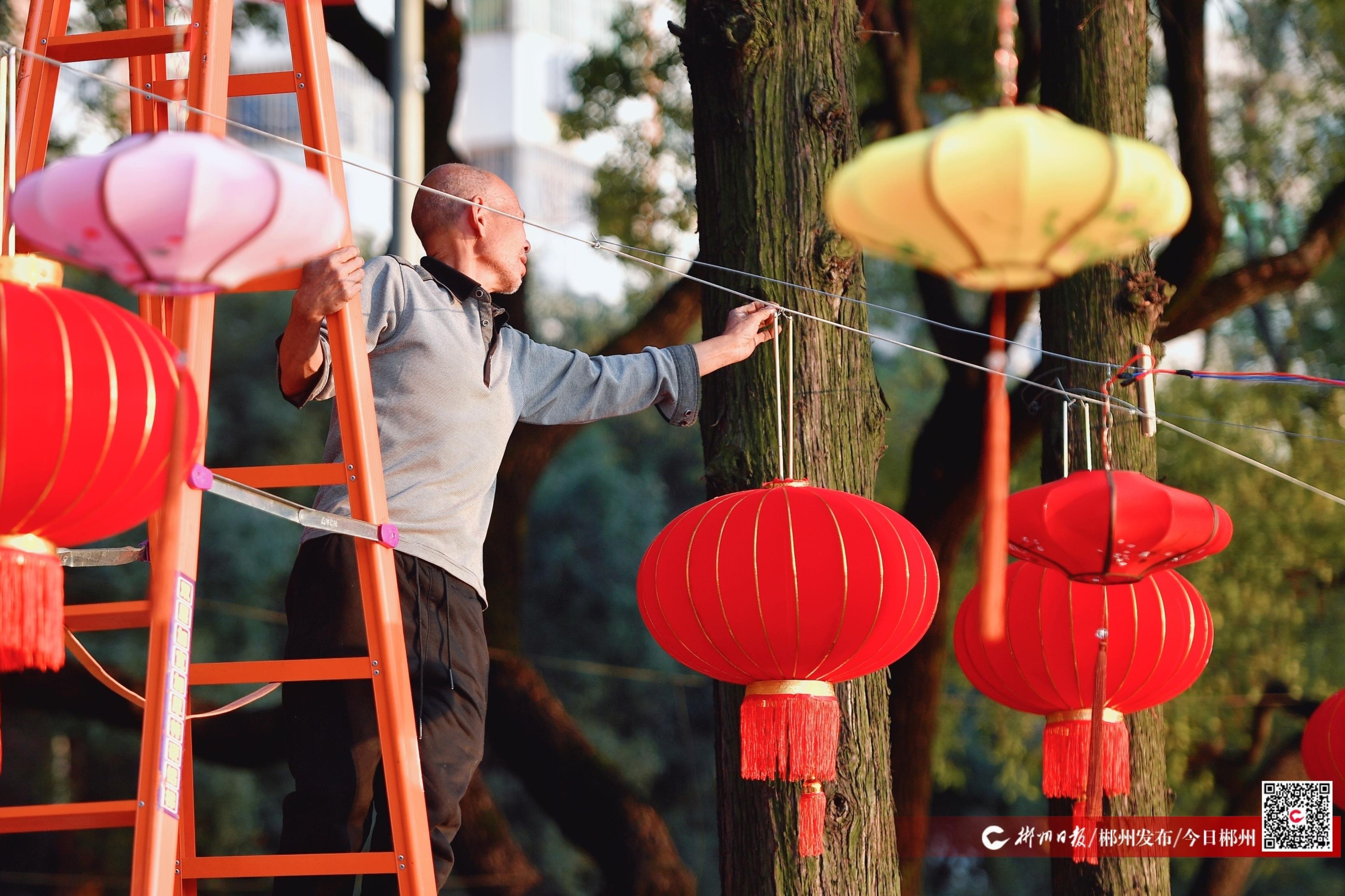 1月20日,在北湖公園內(nèi),工作人員正將各色的燈籠高高掛起,為即將到來新年?duì)I造氛圍。屆時(shí),北湖公園的夜色將會(huì)更加絢麗多彩。
