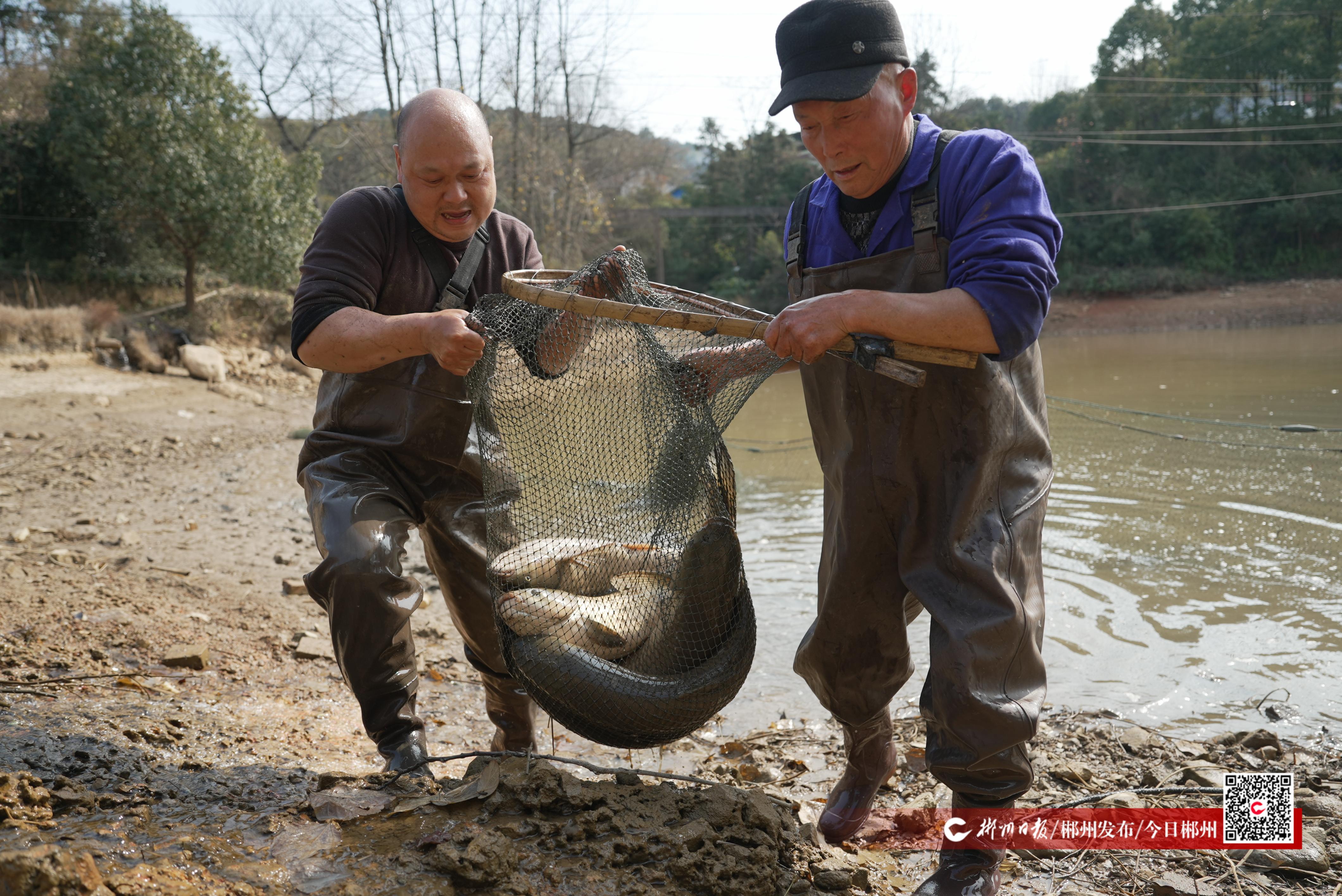 “撈魚(yú)了,年年有余!”1月22日,南方小年的前一天,資興市東江街道雙溪村新屋頭組村民黃桃輝家的魚(yú)塘開(kāi)始拉網(wǎng)撈魚(yú),一條條肥碩的草魚(yú)、鰱魚(yú)隨著漁網(wǎng)緩緩露出水面,在水中活蹦亂跳,沉甸甸的漁網(wǎng),讓黃桃輝臉上綻放出豐收的喜悅。