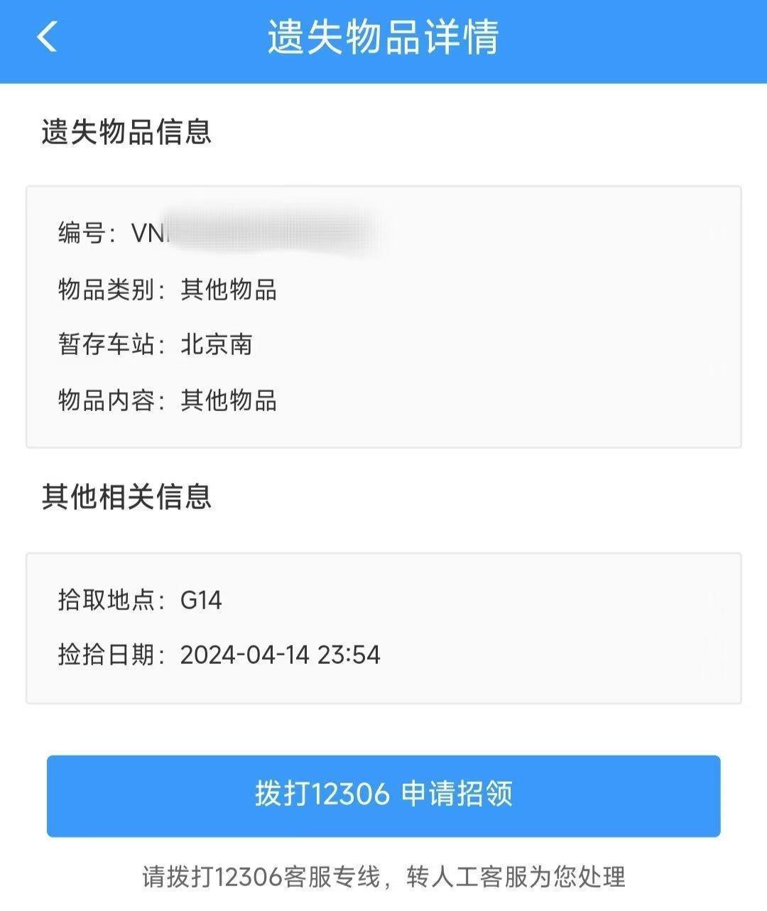 發(fā)現(xiàn)物品后可以撥打客服電話