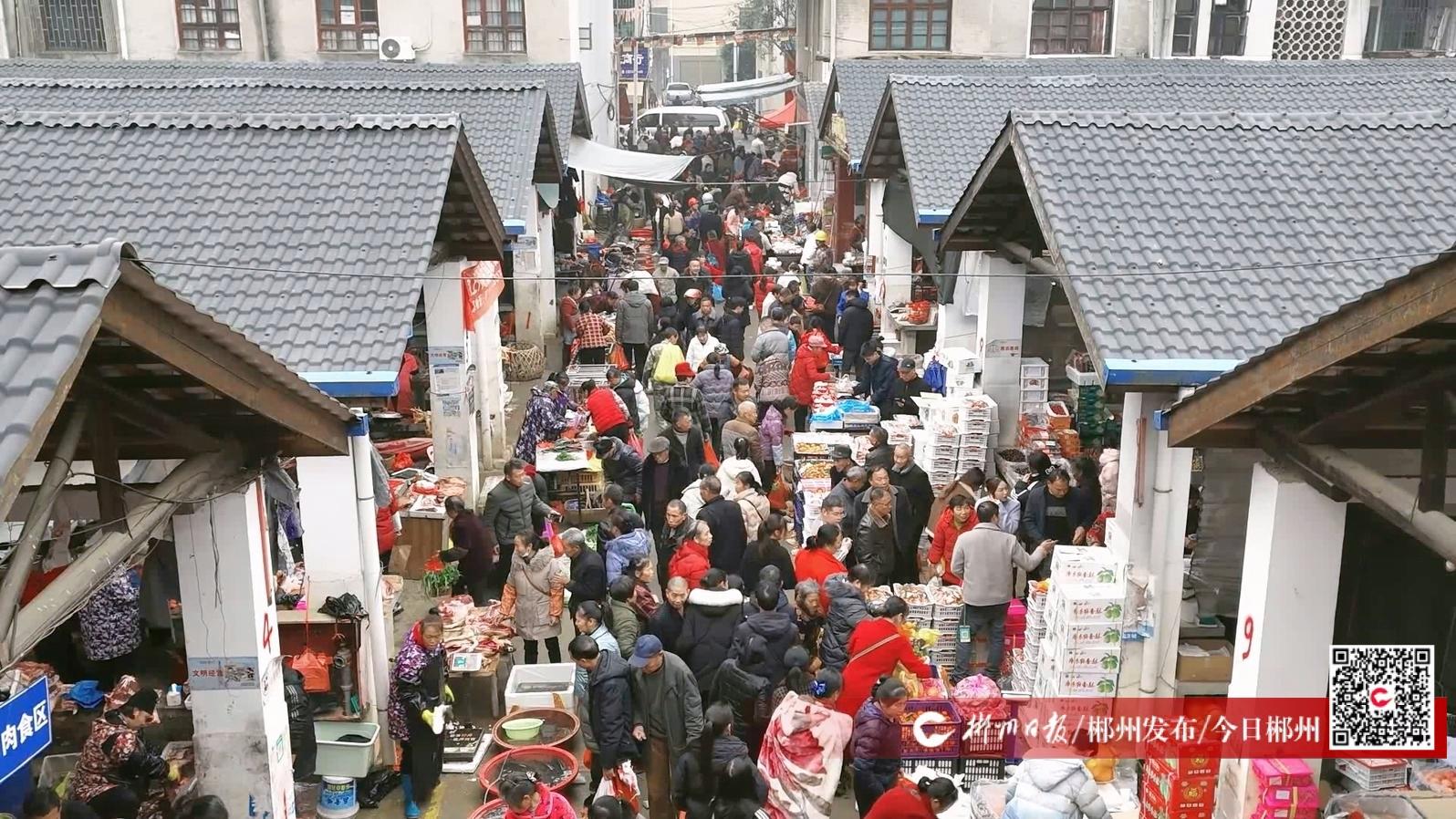 當(dāng)天,八面山瑤族鄉(xiāng)還是春節(jié)前最大的一次年圩。圩場上,蔬菜、水果、瑤家山貨、春聯(lián)燈籠等一應(yīng)俱全,土雞、土鴨、臘肉、糍粑以及“套花”“團(tuán)馓”“糕皮”等資興特色小吃尤其走俏。數(shù)千群眾在這里置辦年貨,濃濃的年味在這里聚攏、升騰。