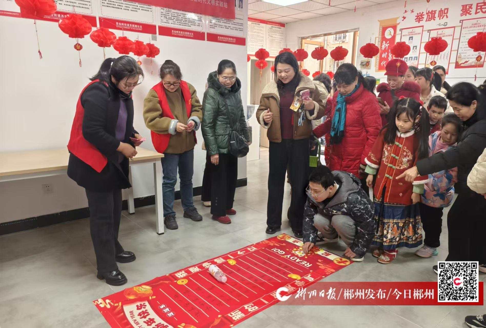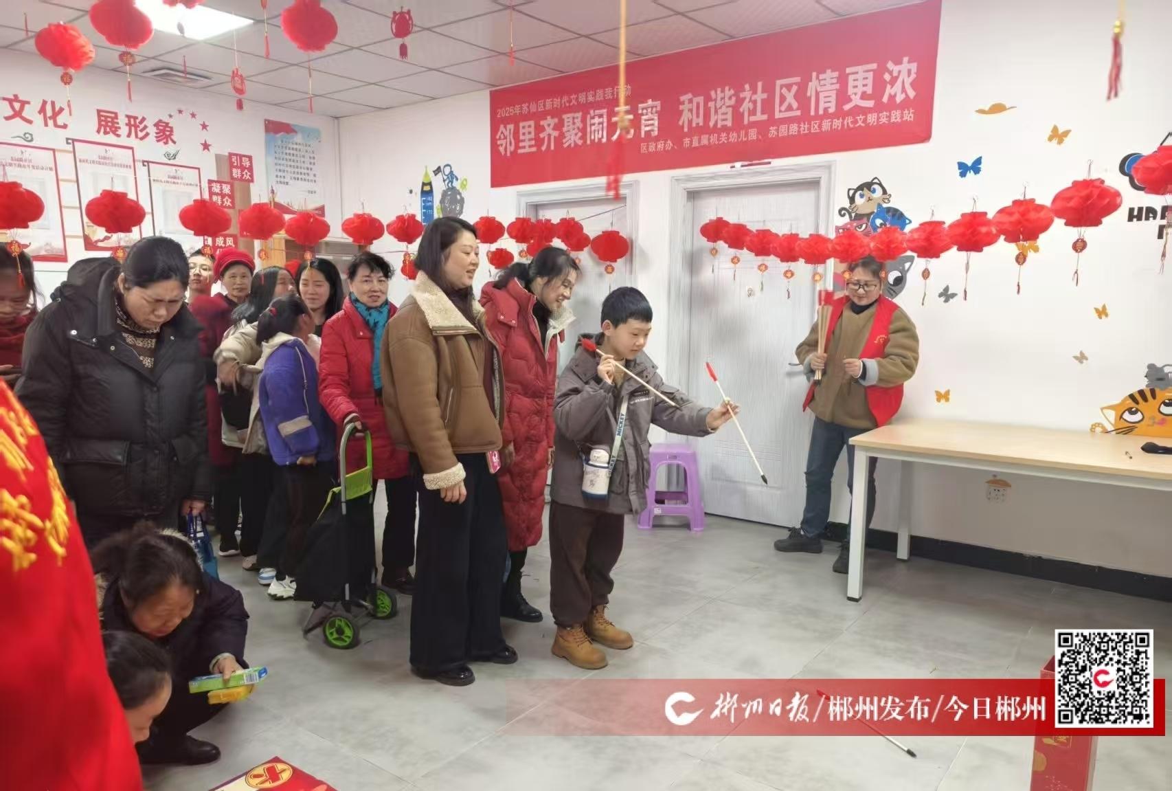 2月11日上午9點,蘇仙區(qū)蘇仙嶺街道蘇園路社區(qū)聯(lián)合蘇仙區(qū)政府辦在蘇園路社區(qū)新時代文明實踐站開展“鄰里齊聚鬧元宵 和諧社區(qū)情更濃”活動。