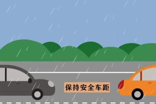 2、控制車(chē)速,保持安全車(chē)距:雨天路面濕滑,車(chē)輛行駛過(guò)程中要減速慢行,特別是在車(chē)多、人多以及不熟悉的路況下,要注意觀察前后車(chē)距,避免盲目超車(chē)、并線,與大型車(chē)輛保持安全距離。