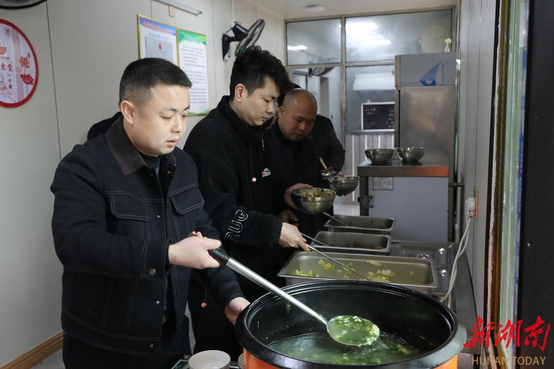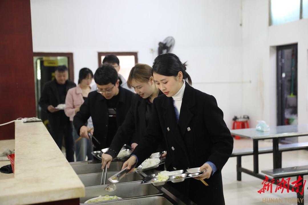 ▲3月18日,郴州市紀(jì)委監(jiān)委干部楊文京(右一)與桂陽縣紀(jì)委監(jiān)委干部前往桂陽縣樟市鎮(zhèn)調(diào)研督導(dǎo),中午在樟市鎮(zhèn)政府食堂有序排隊(duì)取餐。湖南日?qǐng)?bào)全媒體記者 羅徽 梁可庭 張思齊 攝