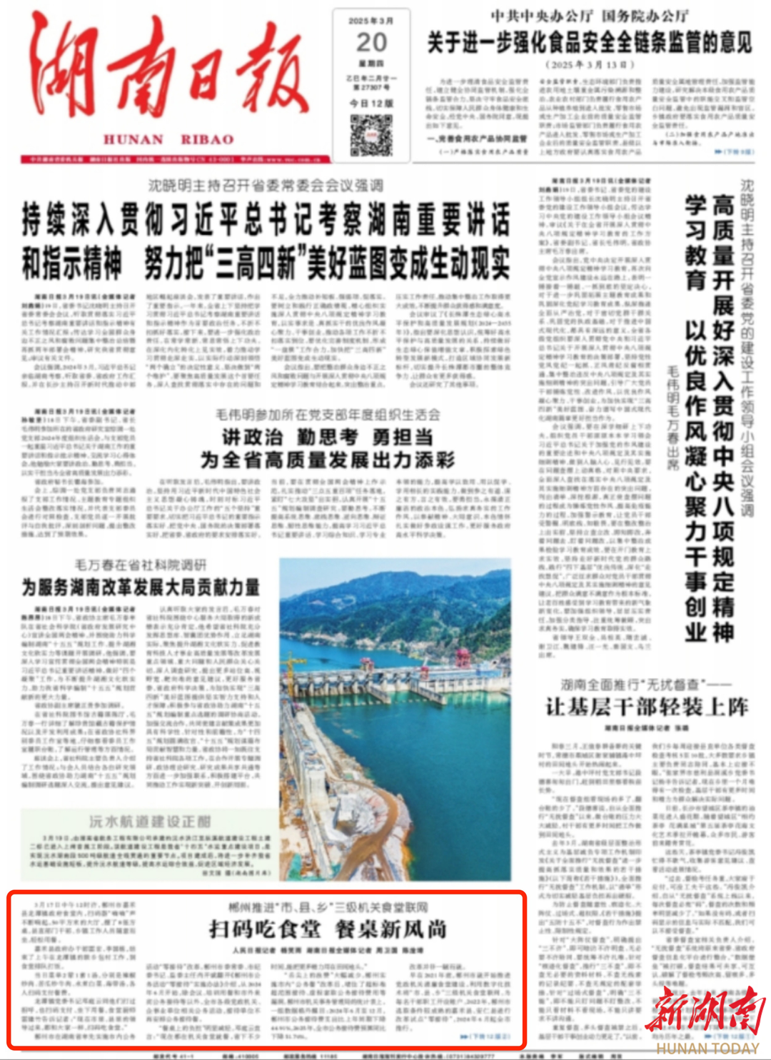 ▲3月18日中午12時(shí)許,郴州市桂陽縣樟市鎮(zhèn)政府食堂內(nèi),市、縣、鎮(zhèn)三級(jí)干部同坐一桌用餐,15分鐘就吃完,簡化了公務(wù)接待流程,減輕了基層接待負(fù)擔(dān)。湖南日?qǐng)?bào)全媒體記者 羅徽 梁可庭 張思齊 攝