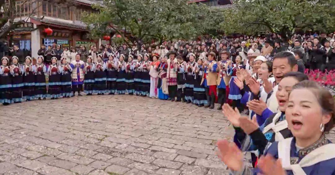 △3月19日,云南麗江古城各族群眾熱情歡迎習近平總書記。