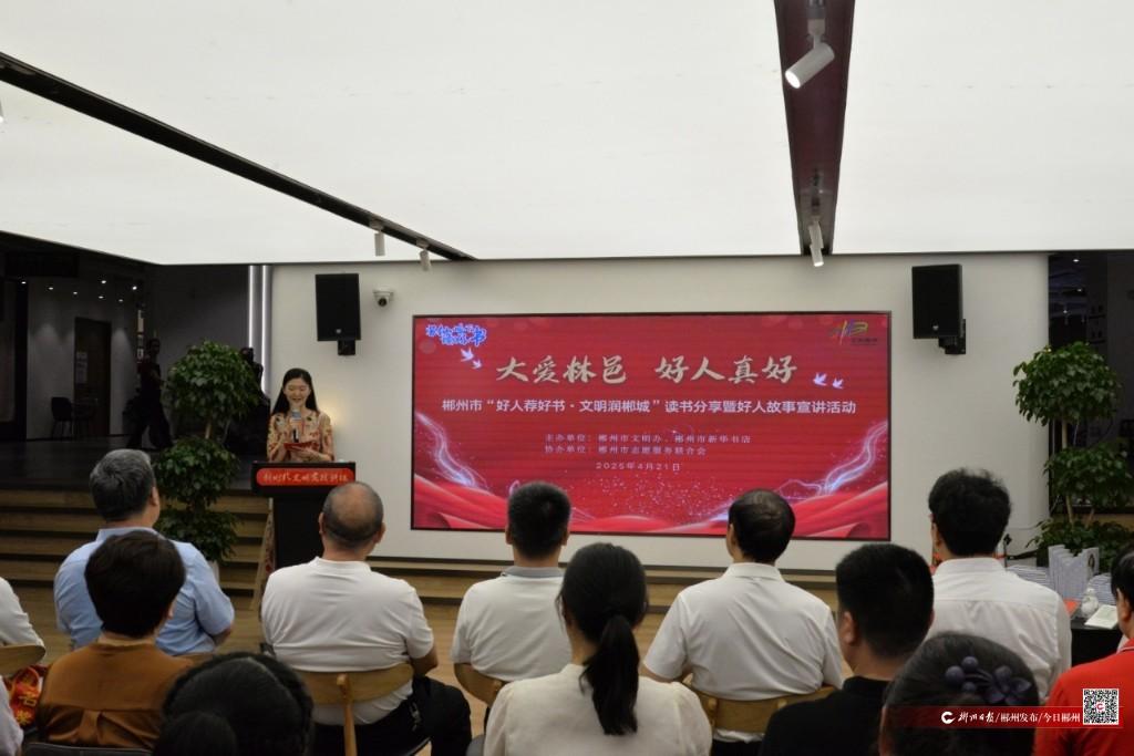 4月21日,由市文明辦、市新華書店主辦的“好人薦好書 文明潤郴城”讀書分享暨好人故事宣講活動在郴州書城舉行。本次活動旨在培育市民崇尚閱讀、自覺閱讀的良好習(xí)慣,讓好人倡導(dǎo)讀好書,通過閱讀推廣正能量,助力“書香郴州 閱讀之城”建設(shè)。