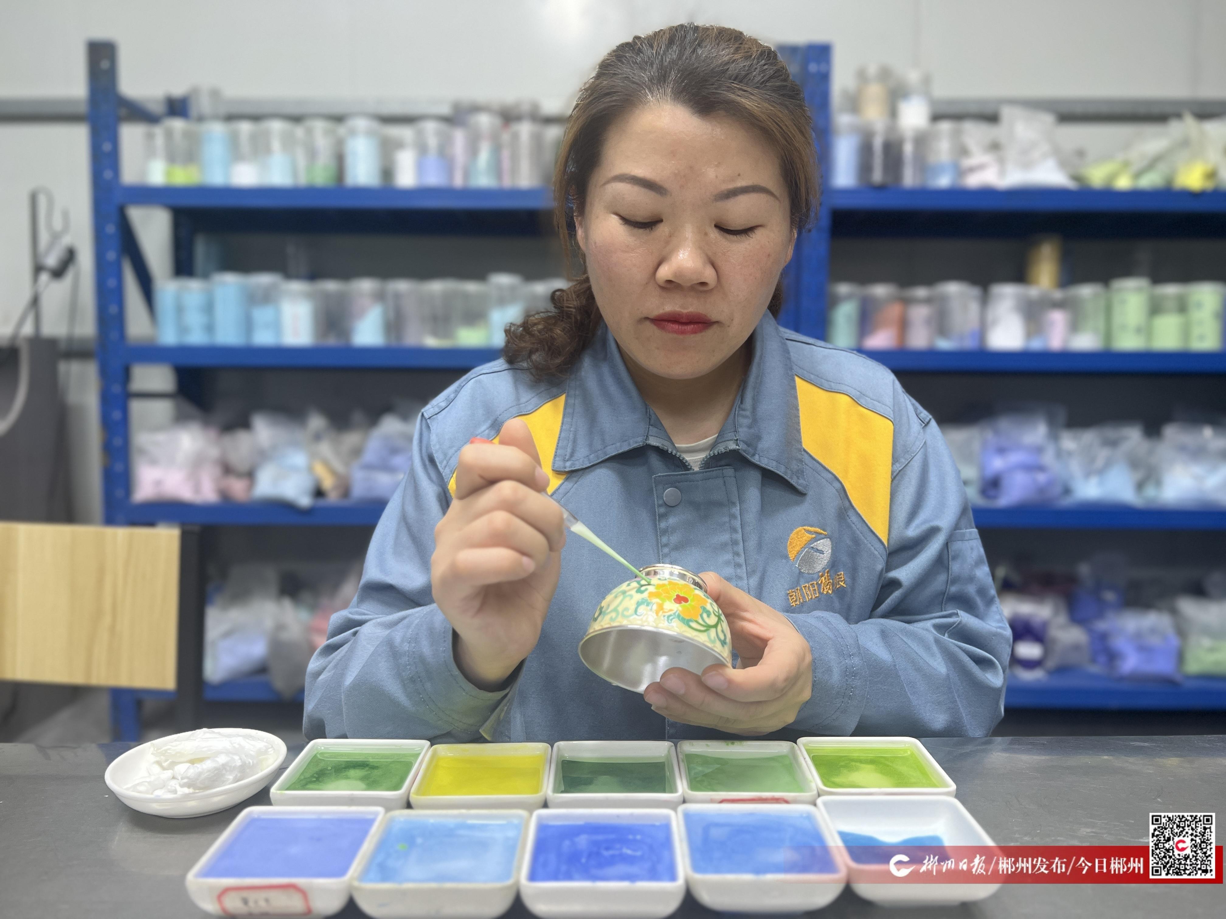 在“中國銀都”永興,有這樣一位景泰藍工匠:她憑著一股好學、刻苦的精神,用不到6年時間從一名普通學徒成長為“中國銀都”銀飾品點藍工藝的領(lǐng)軍人物;她精益求精、勇于創(chuàng)新,攻克了多項技術(shù)難題;她傾囊相授、培育新人,為非遺傳承和鄉(xiāng)村振興注入工匠力量。她就是2025年“全國勞動模范”獲得者、湖南福銀新能源科技有限公司(以下簡稱“福銀公司”)點藍組組長張偉芳。