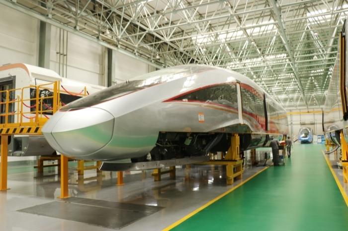 ▲中車長(zhǎng)客動(dòng)車組裝配產(chǎn)線。人民網(wǎng) 任佳暉 攝