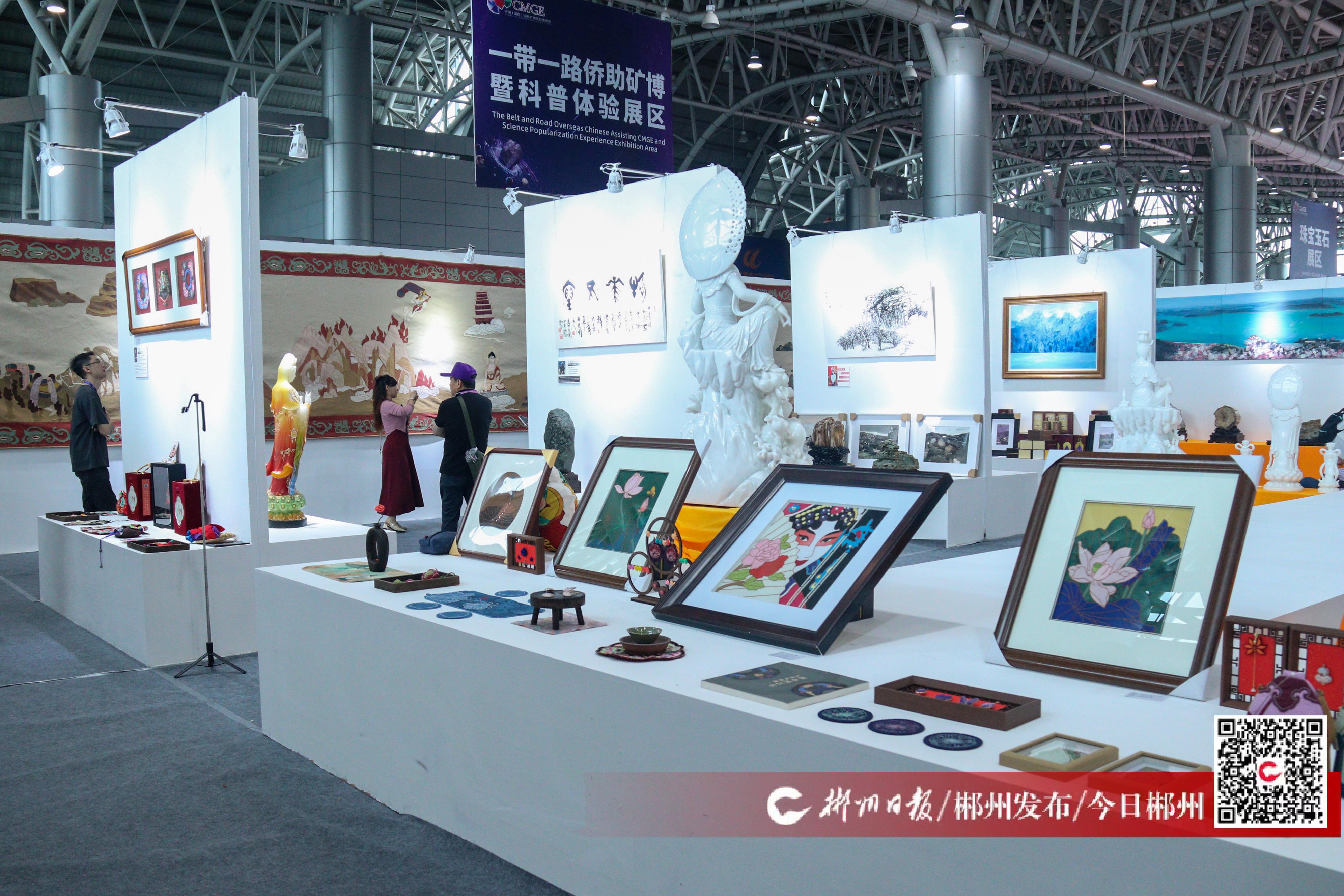 展覽精心策劃了多元化的展示內(nèi)容。在藝術(shù)精品展區(qū),匯集了來自18個國家的華僑華人創(chuàng)作的工藝品、非遺作品和書畫藝術(shù)精品;紅色文化展區(qū)則通過珍貴歷史資料,生動展現(xiàn)了711礦的輝煌歷史和礦工的奮斗精神。整個展陳以“僑畫郴州”“僑書郴州”“僑繡郴州”“僑研郴州”“僑游郴州”五大主題貫穿始終,既凸顯了郴州獨特的自然資源和人文底蘊,又體現(xiàn)了絲綢之路文化交融的時代特色。