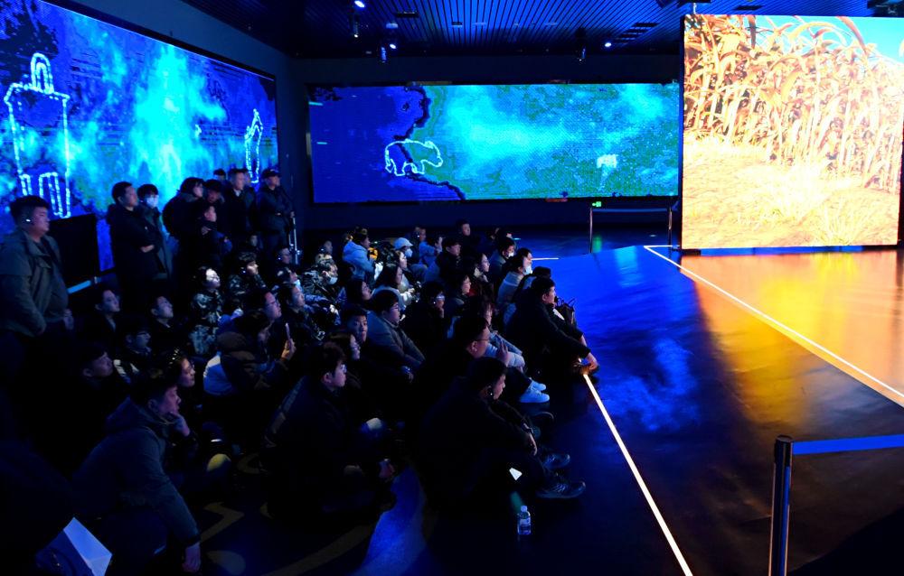 2025年2月21日,游客在安陽(yáng)殷墟博物館新館數(shù)字展廳內(nèi)觀展。