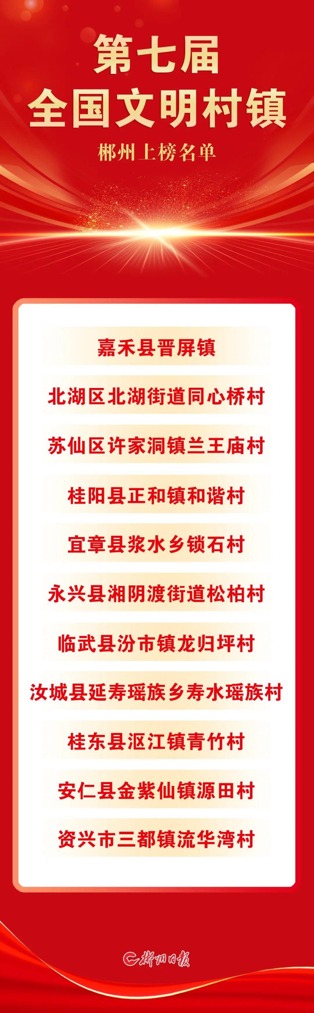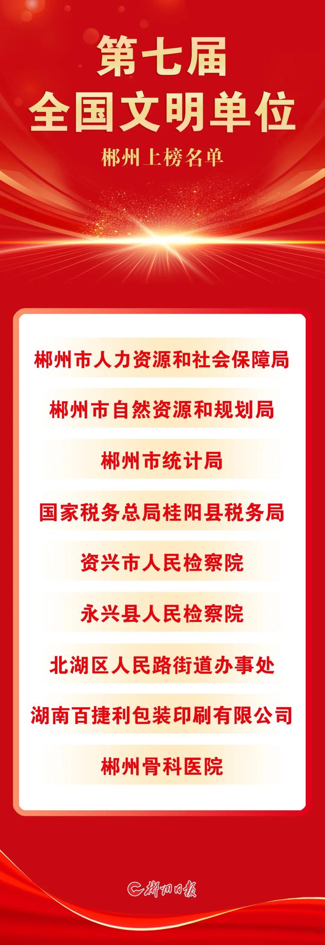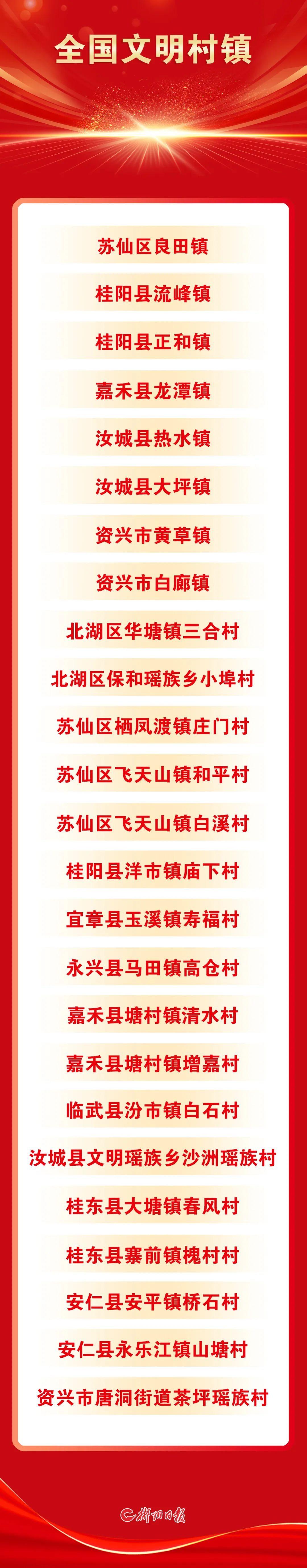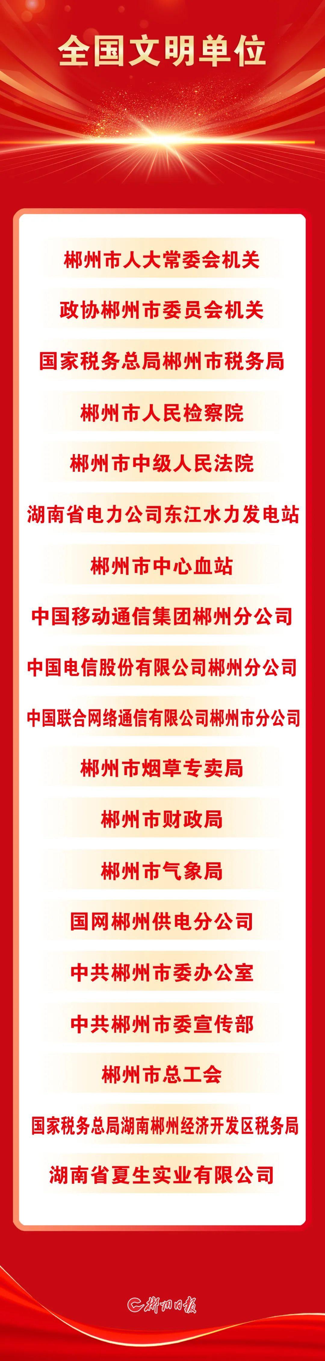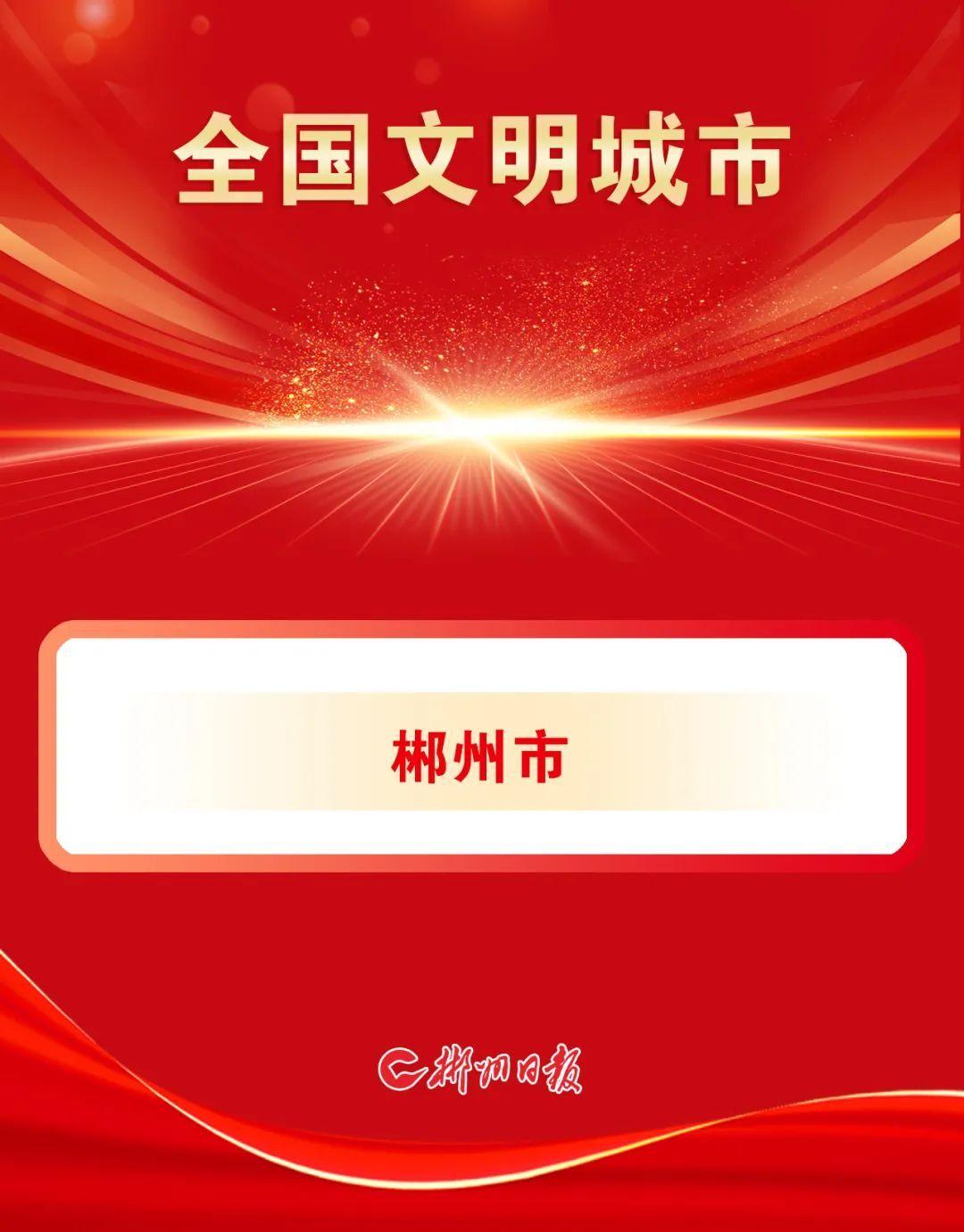 郴州市榮獲新一屆全國文明城市、文明村鎮(zhèn)、文明單位、文明校園、文明家庭名單