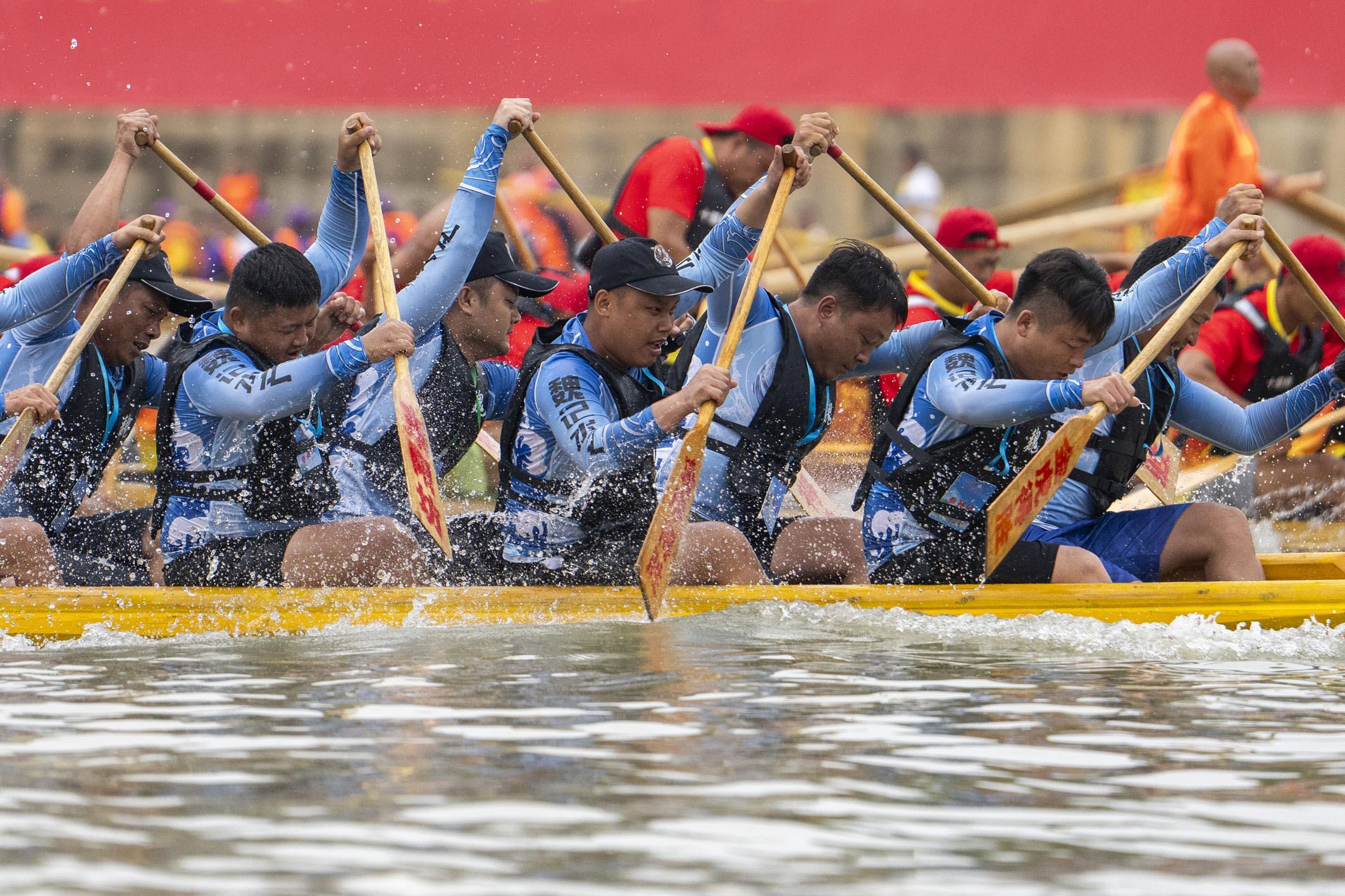 ▲5月25日,“國家非遺道州龍船傳統(tǒng)賽”在湖南永州道縣瀟水河水域開賽,吸引了當(dāng)?shù)亟?00支龍舟隊5000余人奮楫競渡,迎接端午節(jié)的到來。新華社記者 陳思汗 攝