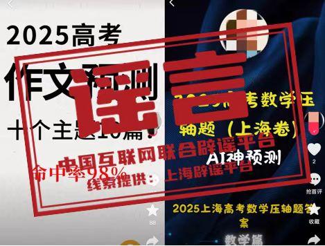 真相:高考進(jìn)入沖刺階段,不少自媒體在社交平臺(tái)上稱,可以利用AI預(yù)測考題,包括語文作文題、數(shù)學(xué)壓軸題等;甚至有自媒體打出“命中率98%”的旗號(hào)。這是真的嗎?